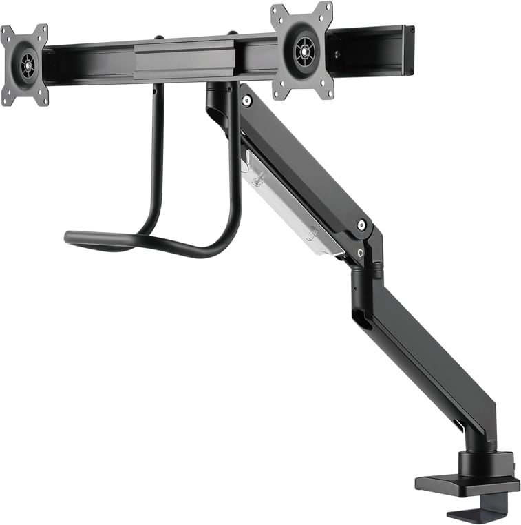 Neomounts NM-D775DX on stiilne käepide mitmekülgsete reguleerimisvõimalustega kahe 10-32″ monitori jaoks. Kinnitusel on gaasvedruga töötav kõrguse reguleerimine, mis teeb sobiva kõrguse reguleerimise lihtsaks. Monitore saab hõlpsalt kallutada või pöörata, mis tagab ergonoomilise tööasendi. Kinnitus säästab laual ruumi ja mugavad kaabliklambrid tagavad korraliku paigalduse. Vaadake tootevideot, et näha selgelt erinevaid võimalusi!