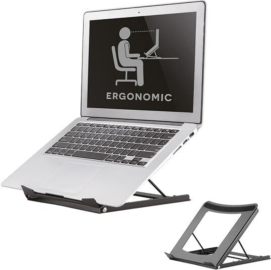 Neomounts NSLS075 on universaalne alus 10″ – 15″ sülearvutitele. See pakub viit erinevat kaldenurka maksimaalse vaatamismugavuse tagamiseks. Lihtne kokku voltida ja kerge kaasas kanda. Stiilne disain on valmistatud pulbervärvitud terasest. Disain väldib tahvelarvutite ja sülearvutite ülekuumenemisprobleeme. Aluse all on libisemiskindlad silikoonpadjad.