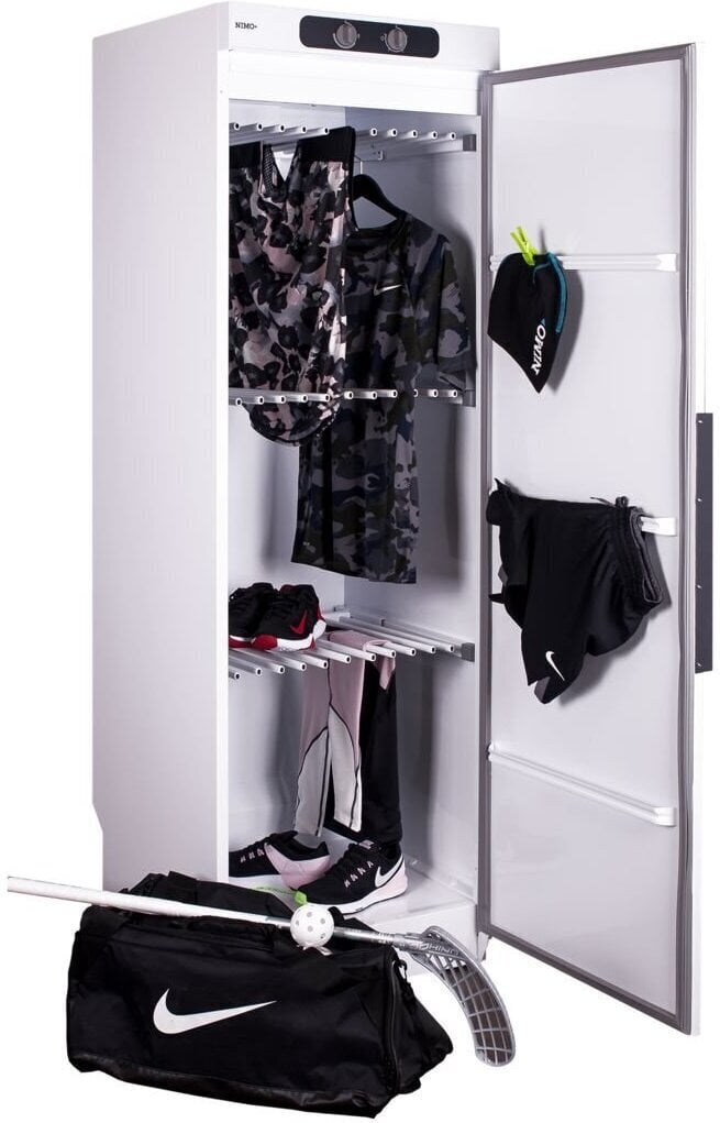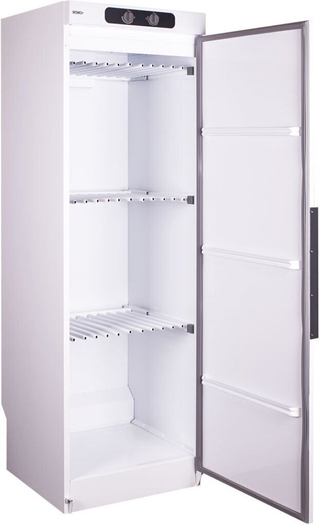Nimo Easy Dryer -kuivauskaappi ajastintoiminnolla, jota ohjataan kahdella nupilla, joilla asetat todellisen tilan ja kuivausajan. Mukana tuuletusliitännät ja säädettävät jalat varmistavat, että kaappi seisoo oikein. Kuivauskaappi voi edullisesti korvata olohuoneen kuivaustelineen, mikä myös minimoi huoneen kosteuden. Mukana ilmanvaihtoliitännät ja säädettävät jalat.