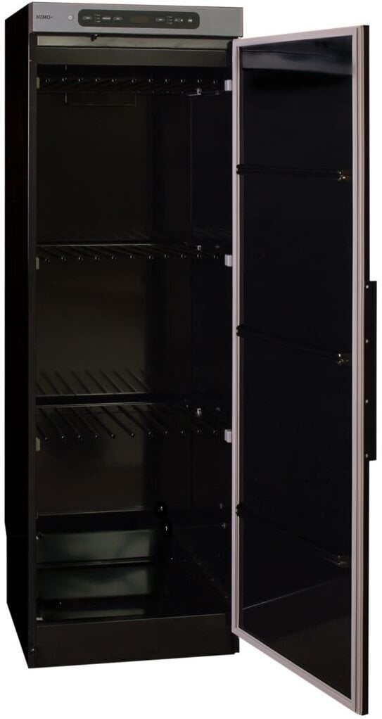 Kapi sees on kolm kuivatustaset, mida saab hõlpsamaks paigutamiseks kapist välja tõmmata. Vajadusel saate ka alumisi tasandeid ülespoole painutada, et pikemate või paksemate tekstiilide eest ära saada. Uksel on ka kolm varrast, mis pakuvad lisaruumi.