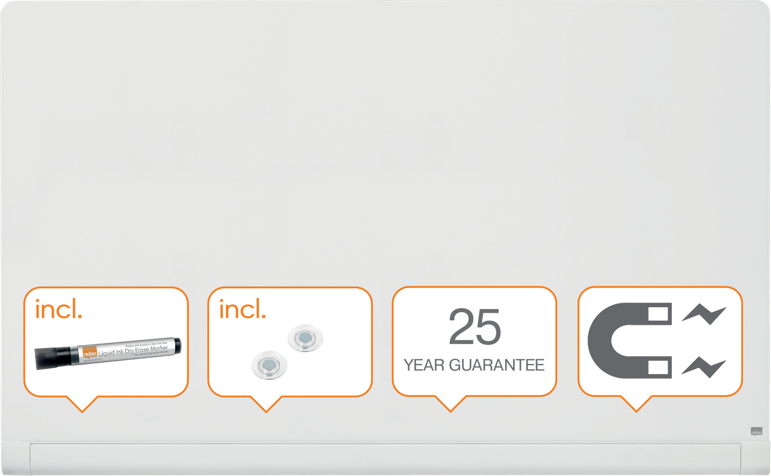 Nobo Impression Pro -lasitaulu piilotetulla kynätelineellä, 85", 190 x 100 cmNobo Impression Pro -lasitaulu piilotetulla kynätelineellä, 85″, 190 x 100 cm