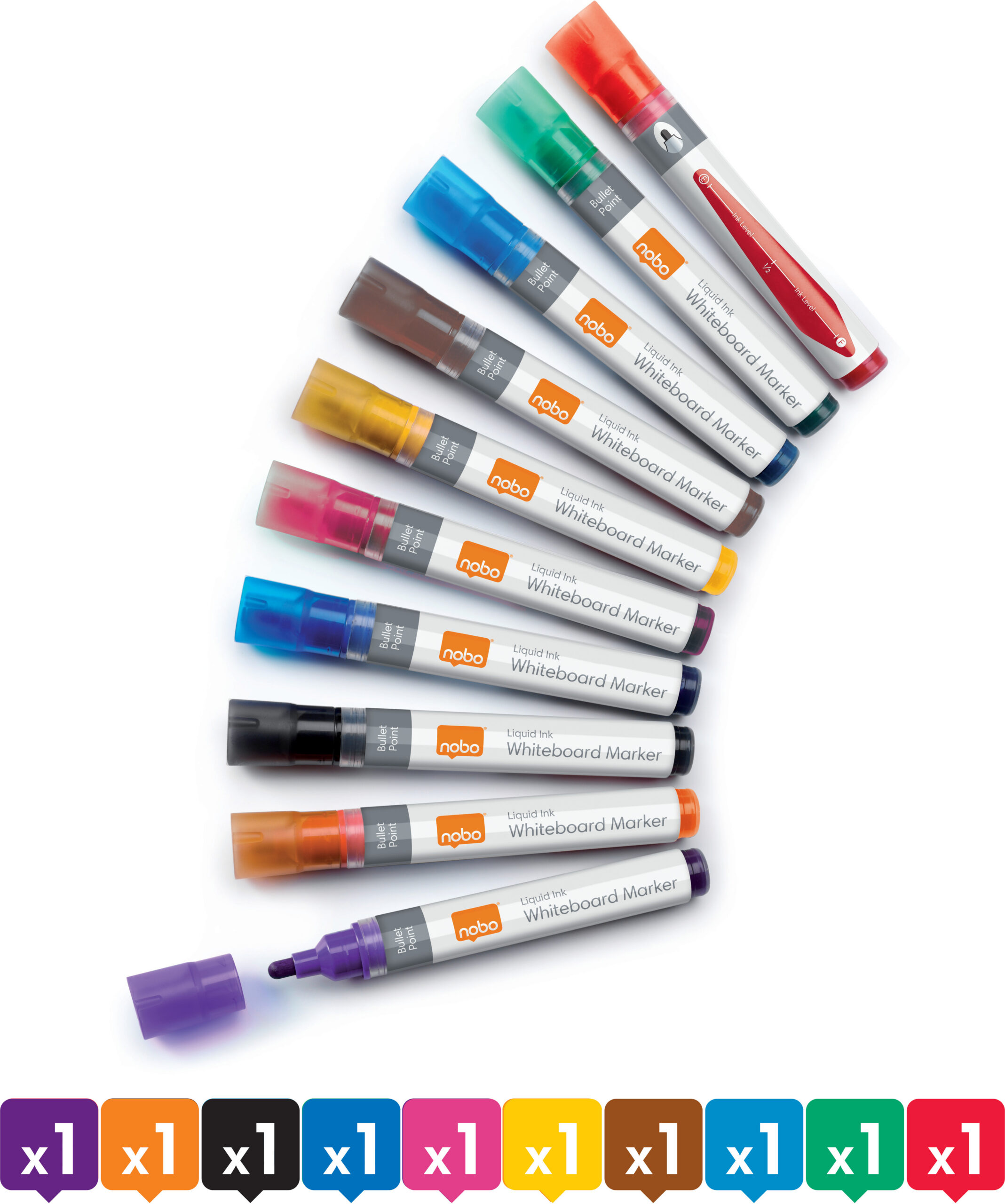 Nobo Liquid Ink - tahvlipliiatsid, ümar ots, erinevad värvid, 10 tkNobo Liquid Ink – tahvlipliiatsid, ümar ots, erinevad värvid, 10 tk