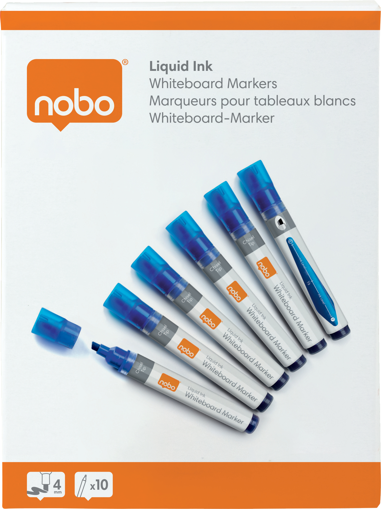 Nobo Liquid Ink -valkotaulukynät, viistokärki, sininen, 10 kpl