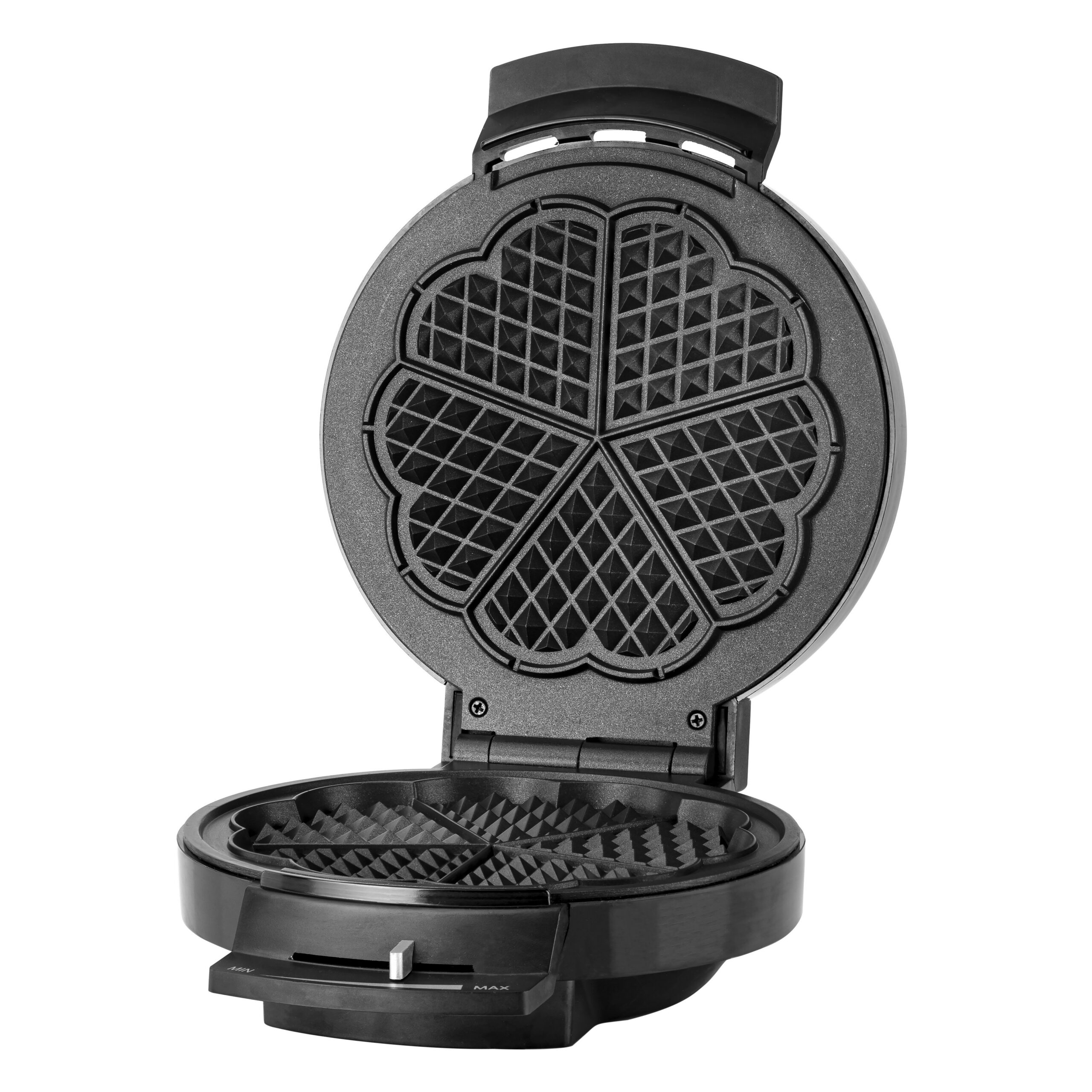 Stiilne roostevabast terasest vahvliraud, mis küpsetab korraga viis südamekujulist vahvlit. Saate hommikusöögiks, hilishommikusöögiks, õhtusöögiks, magustoiduks või vahepalaks valmistada maitsvalt krõbedaid vahvleid!