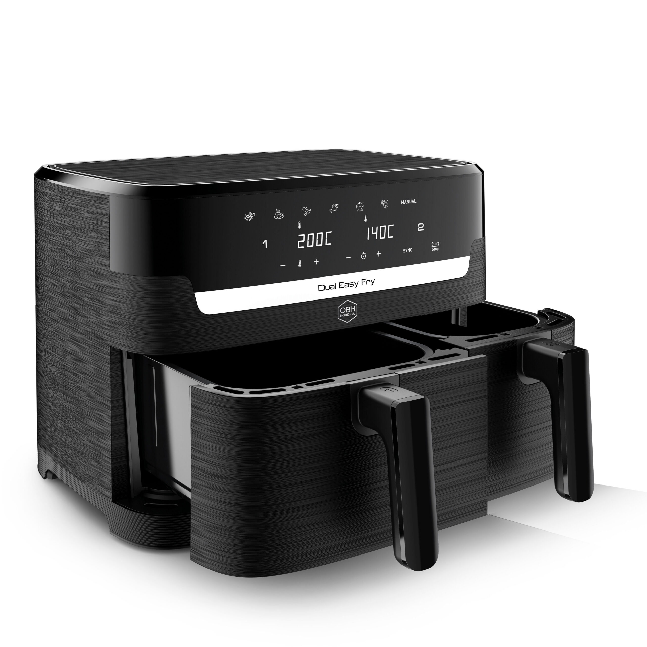 Kaks eraldi keedupotti võimaldavad teil samaaegselt valmistada kahte erinevat toitu erinevatel temperatuuridel. Seade kasutab kuuma ringlevat õhku, mis praadib toidu krõbedaks peaaegu ilma lisatud rasvata ja säästab kuni 65% energiat.