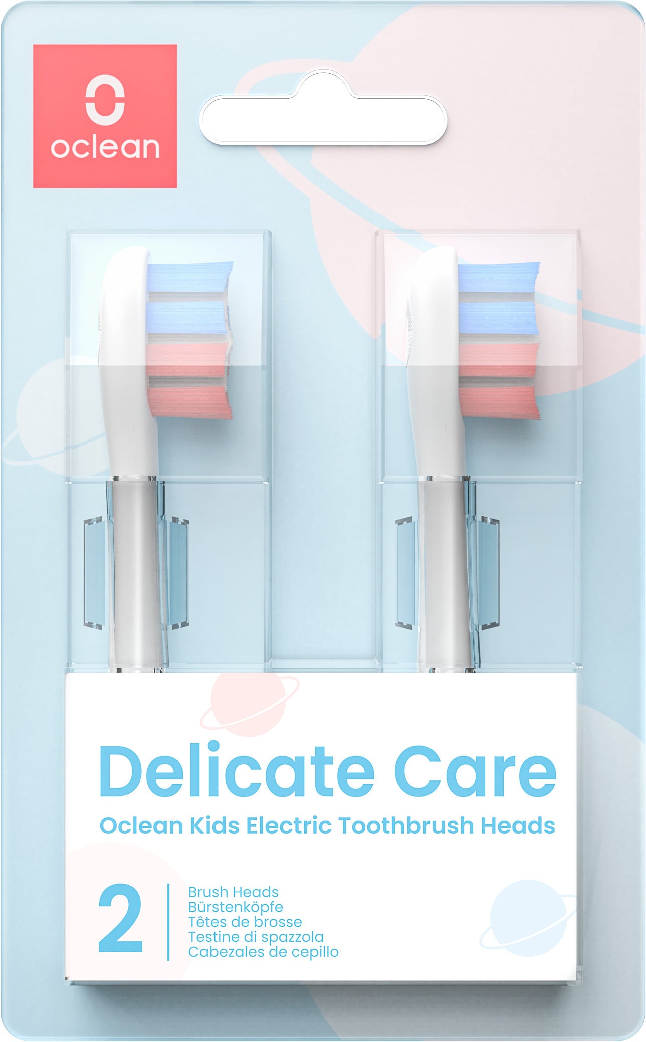 Oclean Kids -sähköhammasharjan hellävarainen vaihtoharja erityisesti perheen pienimmille. Harjoissa käytetyt harjakset on valmistettu DuPont-nailonista varmistamaan sähköhammasharjan oikeanlainen tärinänopeus. Harjakset ovat erittäin joustavia, joten ne puhdistavat plakin tehokkaasti.