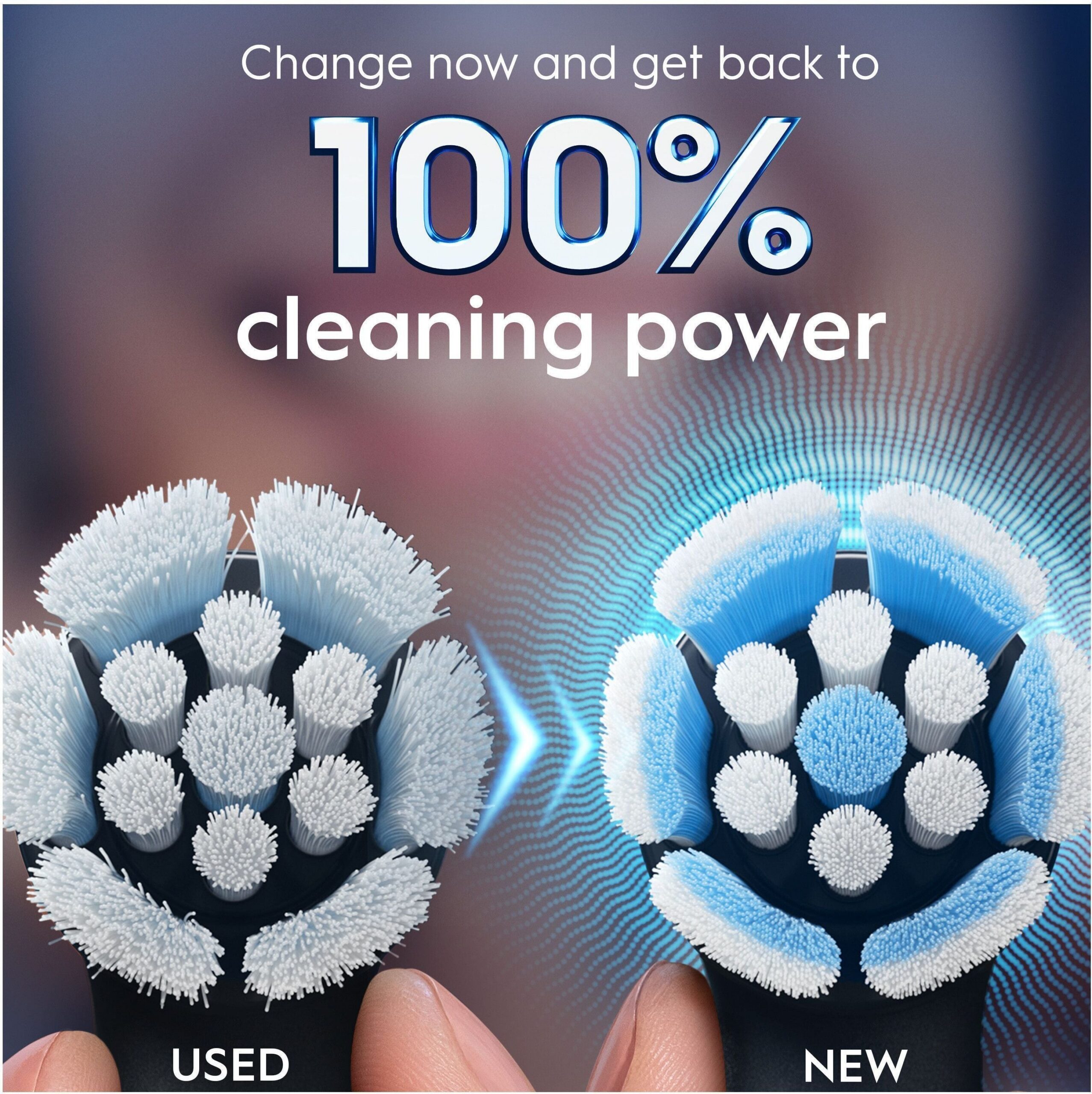 • Vahetage iga 3 kuu tagant: Kulunud harjapea raskendab puhastamist ja jätab maha hambakatubaktereid. Vahetage harjapea, kui harjased muutuvad valgeks, et tagada iga kord suurepärane puhtus.