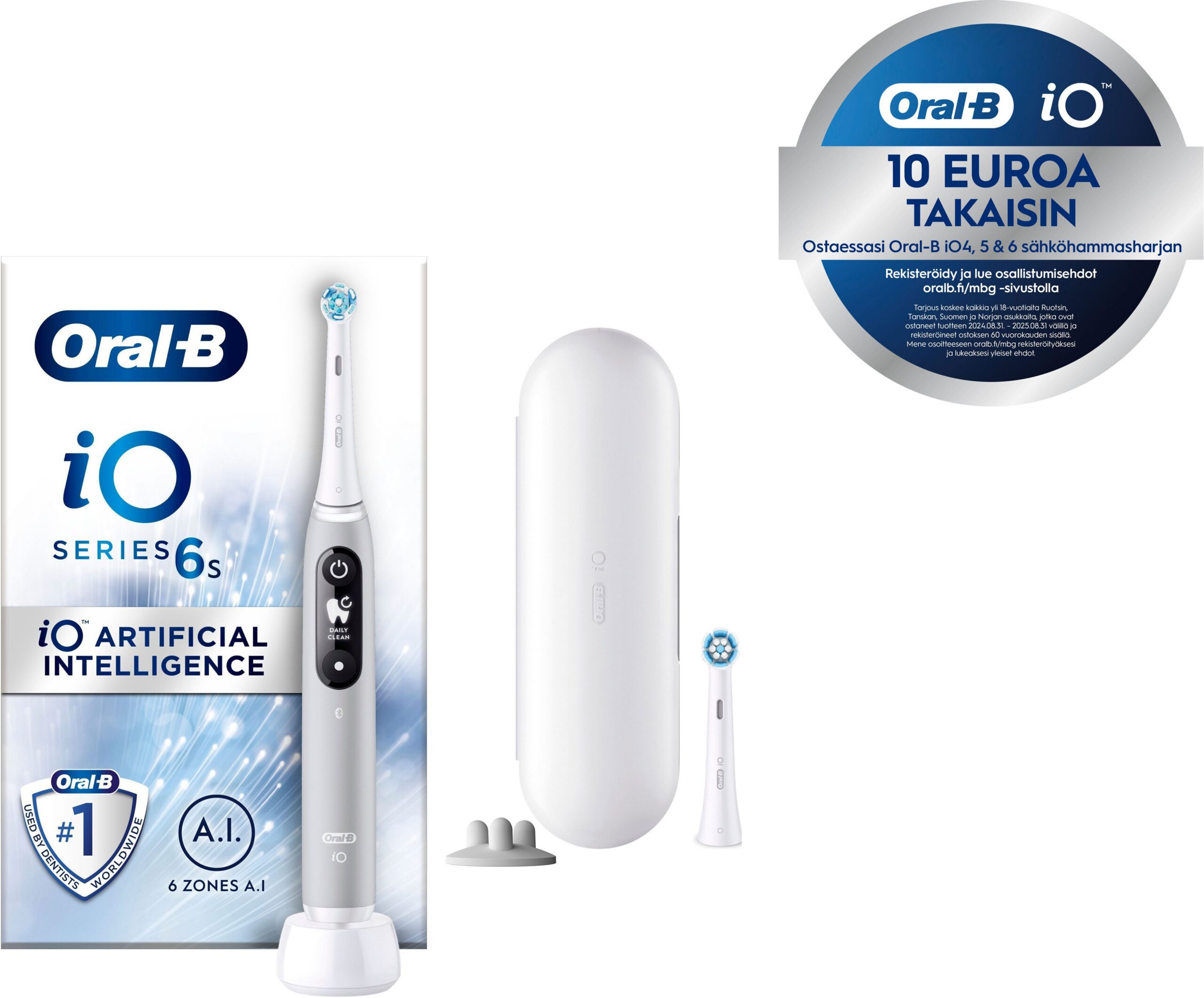 Sisu: 1 iO6 korpus ja 2 asendusharja, 1 reisikott, 1 laadija, 2 asendusharjahoidjat