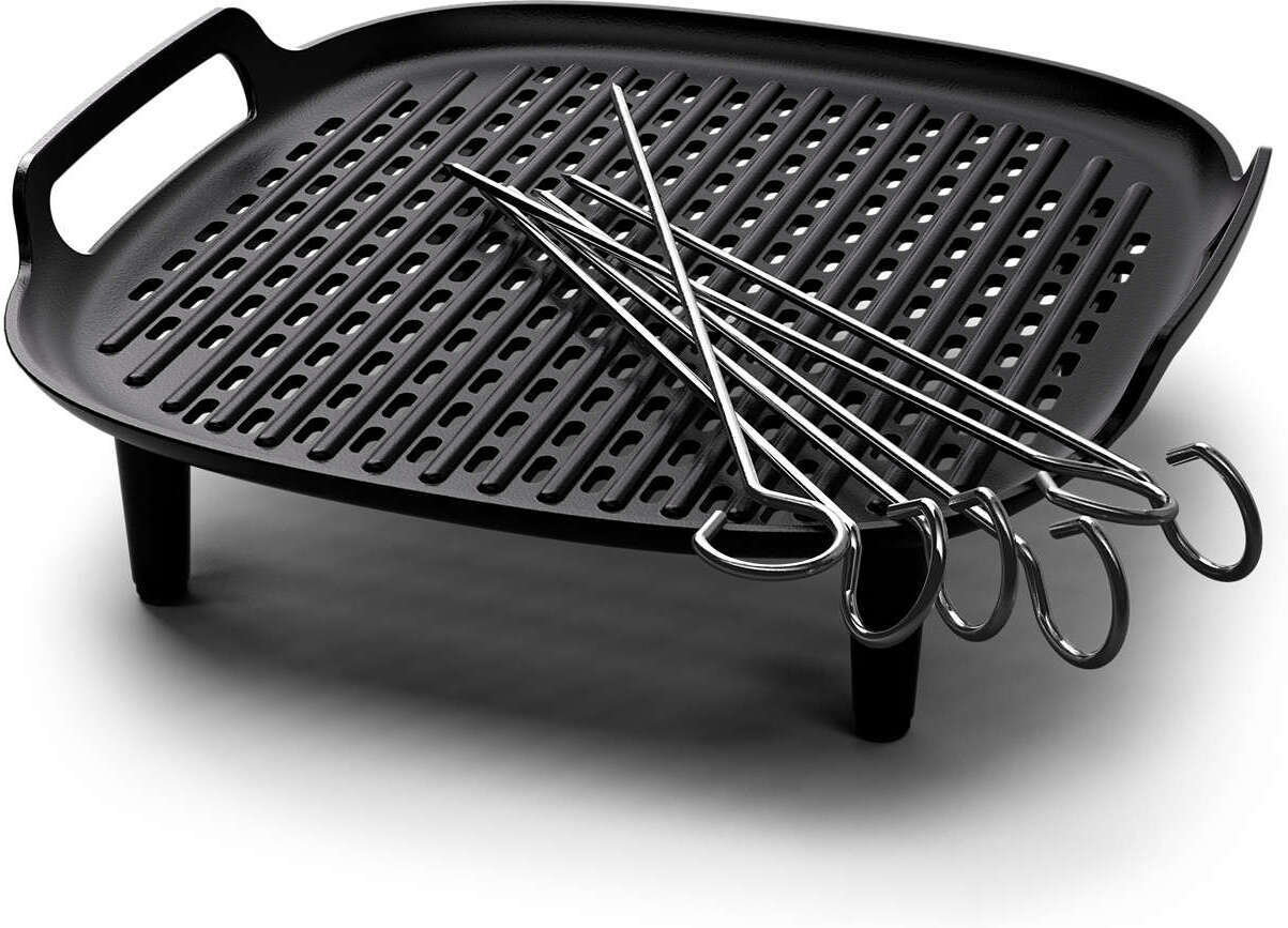 Grillplaat toimib teise tasemena, mis võimaldab teil toiduvalmistamisvõimsust suurendada. Maksimeerige oma Airfryeri küpsetuspinda, asetades oma lemmiktoidud, näiteks burgerid, köögiviljad, kanakoivad ja palju muud, grillplaadi ülemisele ja alumisele osale.
