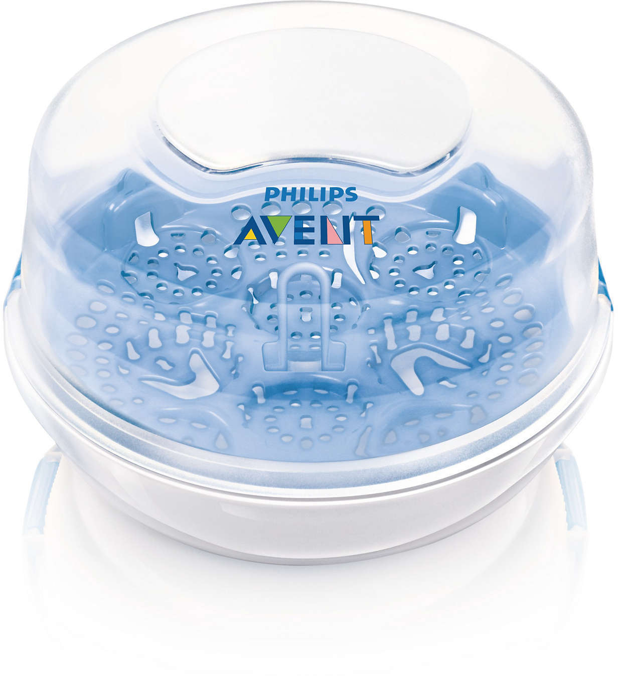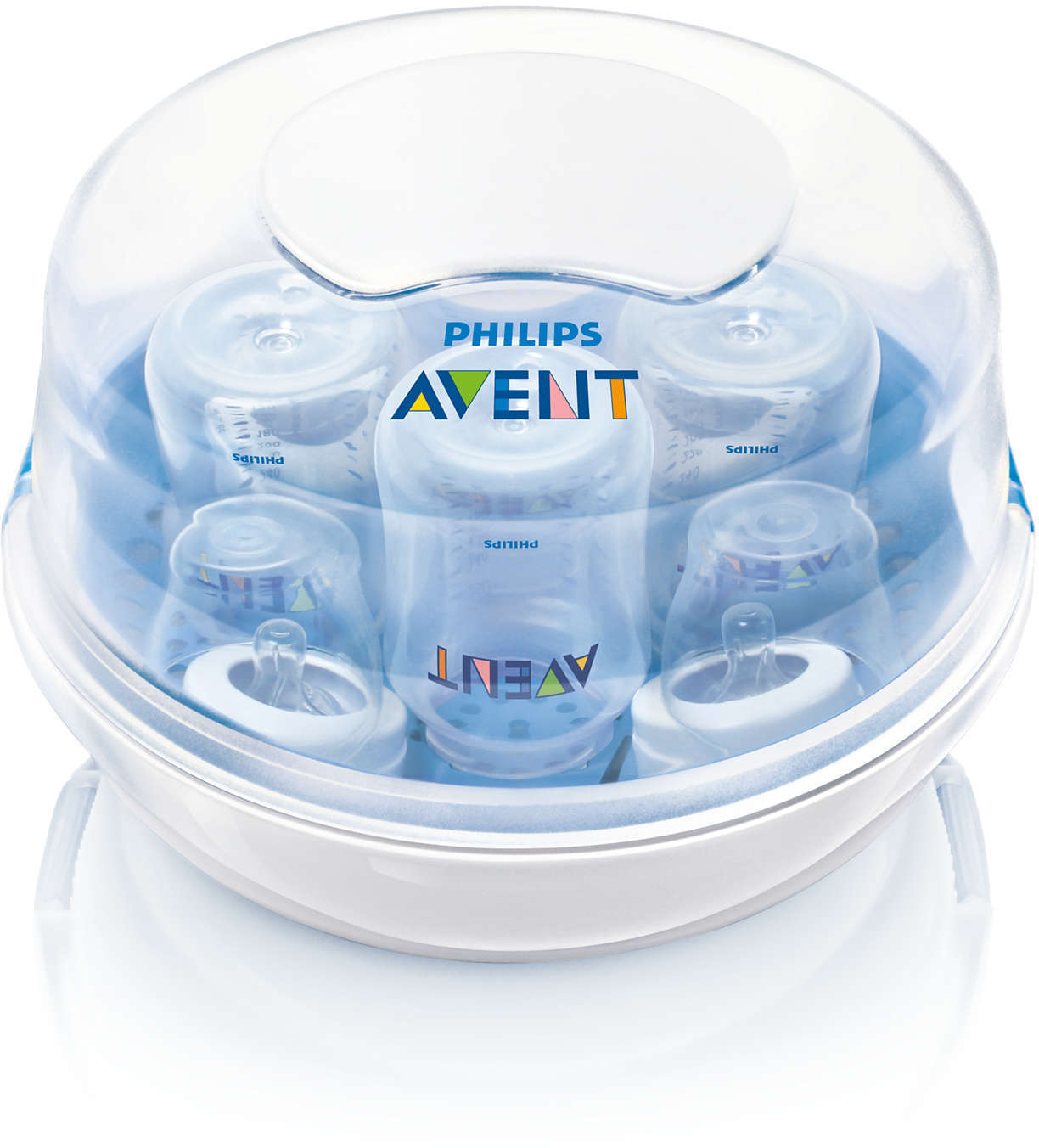 Philips Aventi mikrolaineahju aurusteriliseerijaga on lutipudelite steriliseerimine mikrolaineahjus imelihtne, kõigest kahe minutiga! Mikrolaineahju aurusteriliseerija pole mitte ainult väga kiire, vaid ka väga tõhus. See mikrolaineahju aurusteriliseerija on tõestatult võimeline hävitama 99,9% bakteritest. Tööaeg sõltub mikrolaineahju võimsusest. Philipsi Aventi mikrolaineahju aurusteriliseerija mahutab korraga kuni neli Philipsi Aventi lutipudelit. Mikrolaineahju aurusteriliseerija sobib nii koduseks kui ka reisimiseks. Seade on kerge ja kompaktne, seega on seda lihtne kaasa võtta. See hoiab lutipudelid steriilsena kuni 24 tundi, kui kaas on suletud.
