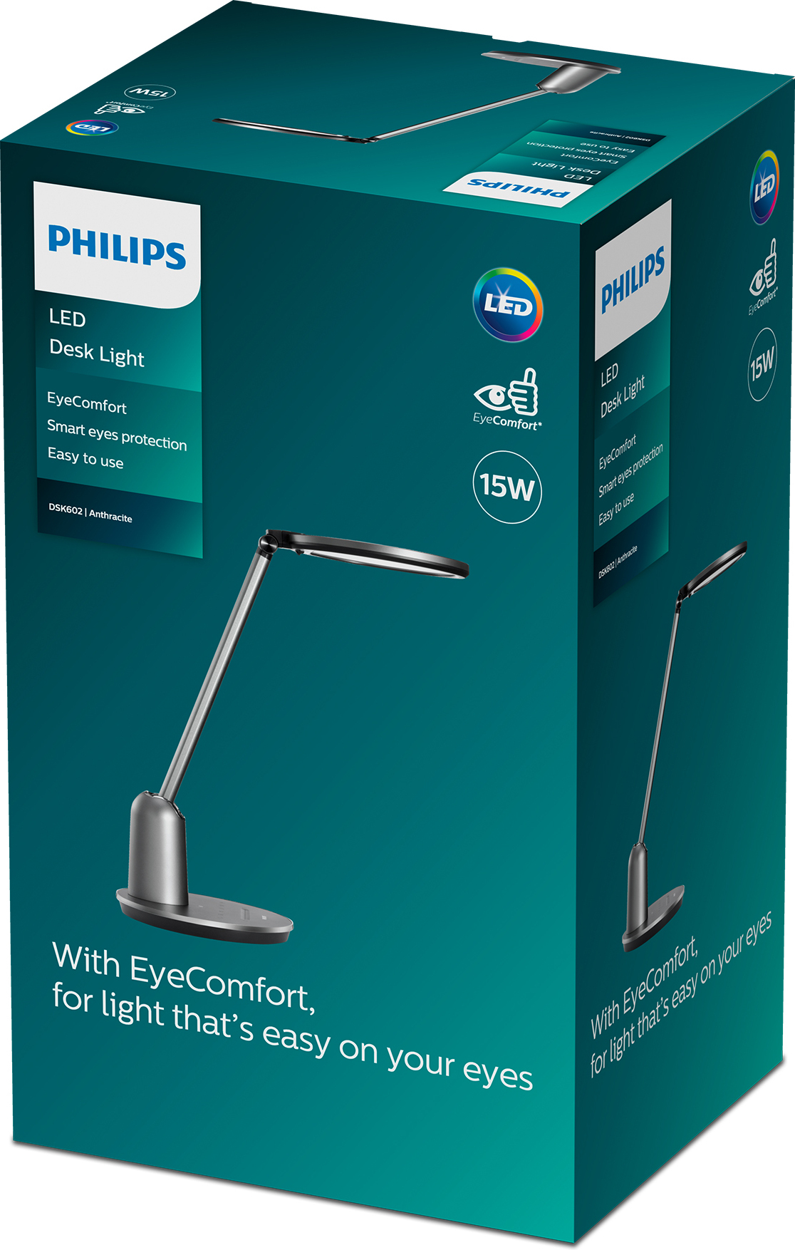 Philipsi stiilne Einstein DSK602 laualamp pakub kvaliteetset ja eredat valgustust. Laualambi valgus on silmadele meeldiv ning sobib nii kodus kaugtööks kui ka täpsust nõudvateks valgusharrastusteks. Lambiosa saab mugavalt soovitud asendisse painutada.