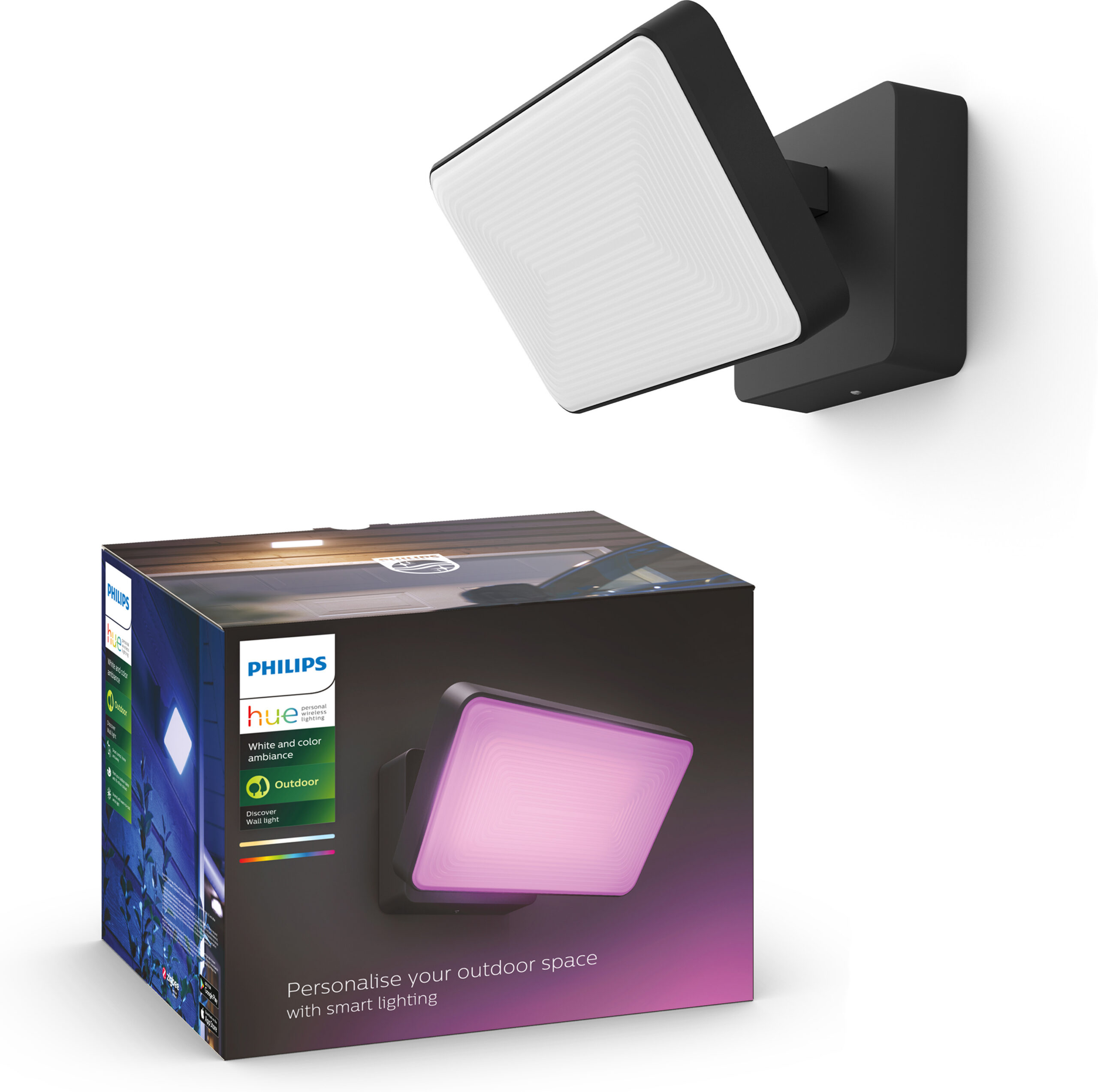 Hue Discoveri prožektoriga saad oma aeda vajadusel palju valgust tuua. Lamp on valmistatud kvaliteetsest alumiiniumist ja tippklassi sünteetilistest materjalidest. Nüüd saad oma aeda värve tuua ka erilistel puhkudel. Nutilampi saab ühendada Hue Bridge’iga, nii et kõik värvid on sinu käsutuses. Rakenduse kaudu saad tulesid juhtida ka väljastpoolt kodu, nii et isegi reisil olles tundub, nagu oleksid kodus, või lasta oma telefoni geograafilisel asukohal tuled sisse lülitada, kui koju jõuad.