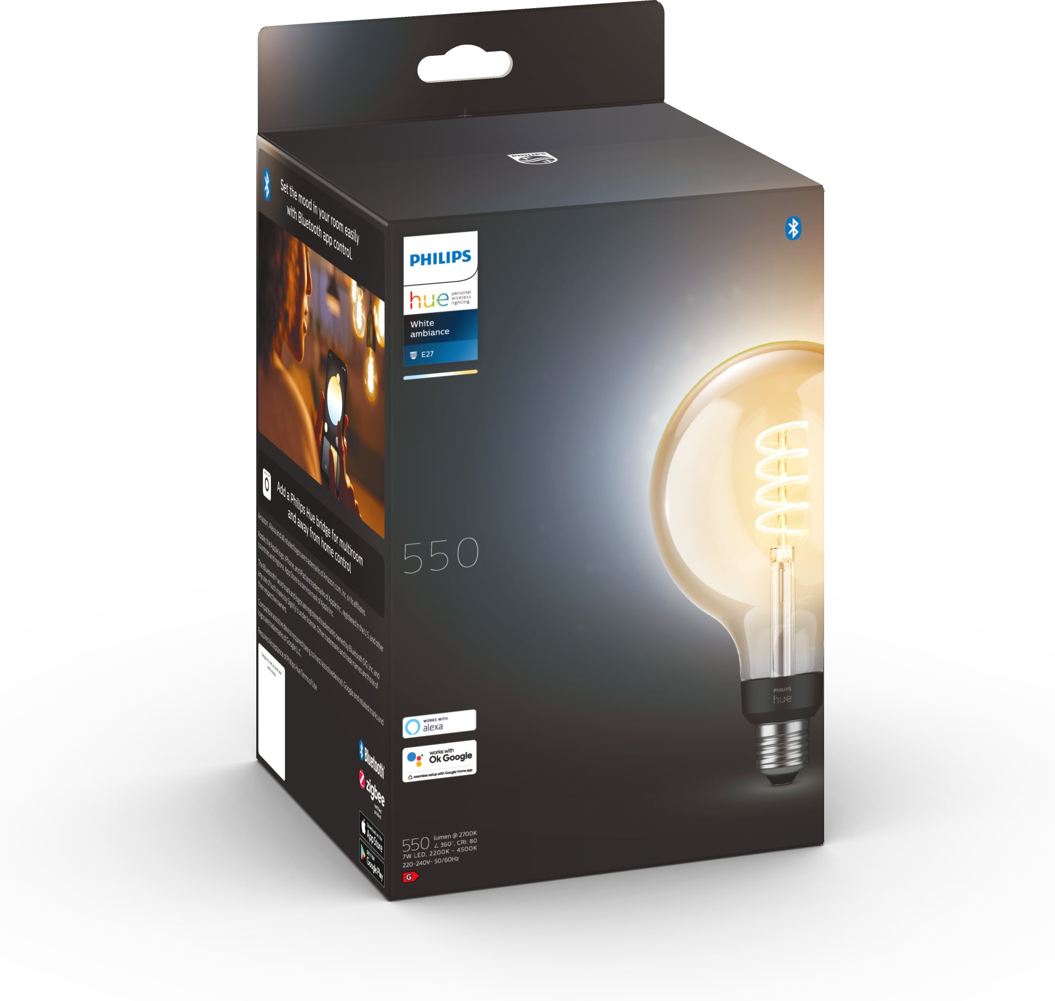 Philips Hue White Ambiance Filament-pirnid on ainulaadsed nutikad LED-pirnid, mis loovad stiilse ja hubase atmosfääri igas teie kodu toas. Pirnil on läbipaistev klaas, mille kaudu helendab vintage-stiilis hõõgniit, ühendades moodsad ja stiilsed omadused elegantse vintage-stiiliga. White Ambiance seeria pirnid võimaldavad teil valida iga olukorra jaoks ideaalse atmosfääri. Kui vajate värskendamist, muutke pirni värvitemperatuuri jahedaks valgeks ja kui soovite lõõgastuda, valige soojem valge valgus. G125 on suur kerakujuline pirn ja see sobib hõlpsasti ainsa valgusallikana igas ruumis, kus soovite sisustada nii klassikalises kui ka peenes stiilis ja luua suurepärast meeleoluvalgustust. Samuti saate luua suurejoonelise Filament-seeria pirnide paigutuse, kombineerides mitu pirni kokku, võimaldades iga pirni eraldi juhtida, et luua ideaalne atmosfäär. Valgustuse seadistamine on lihtne ning saate seda hõlpsalt sisse, välja lülitada ja hämardada oma nutiseadmete ja mis tahes Hue lisatarviku abil.