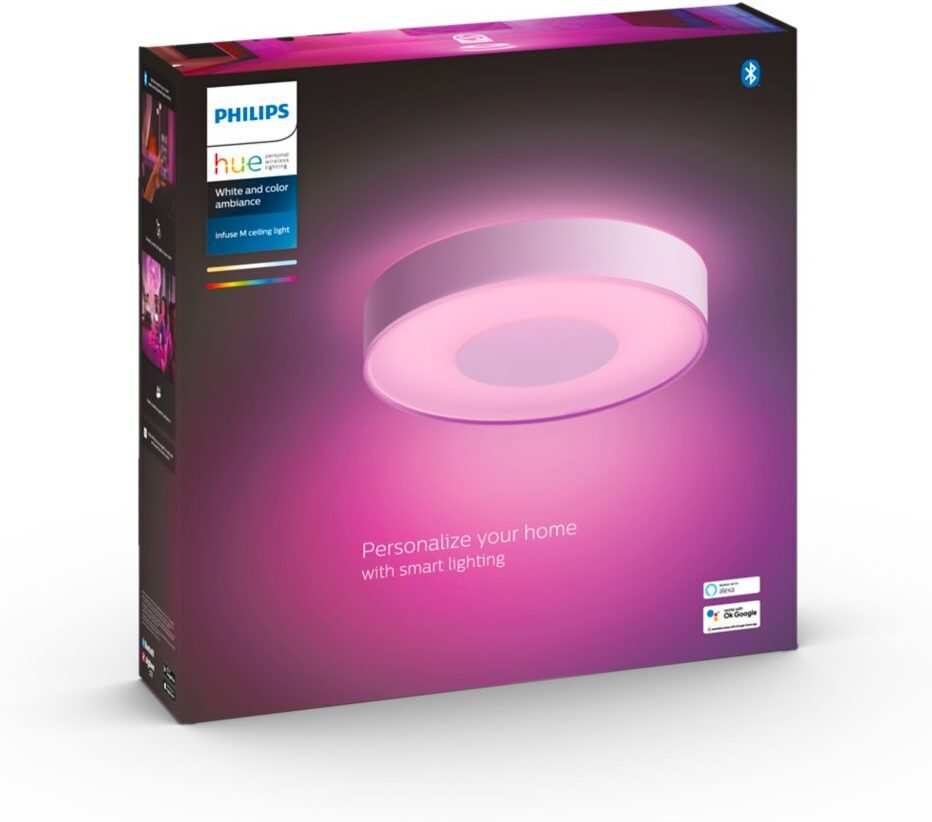 Philips Hue Infuse on tooteperekond, mis koosneb õhukestest ja stiilsetest laevalgustitest, mis sobivad kõikjale teie kodus. Keskmise suurusega mudel on moodne ja kvaliteetne lamp, mis sobib muuhulgas magamistuppa, elutuppa ja söögituppa. Tänu valgele ja värvilisele meeleolule saate valida 16 miljoni värvitooni ja erinevate valge valguse varjundite vahel. Lamp valgustab tugevalt, luues ka lakke õrna valgusefekti, mis annab teile suurepärase meeleoluvalgustuse, mida saate vastavalt oma vajadustele muuta. Looge pidulik õhkkond värviliste valgusefektidega ja hämardage valgustust soojemateks toonideks, et luua hubane õhkkond. Valgustuse muutmine on lihtne Hue rakenduse, mis tahes Hue lisatarviku või häälkäskluste abil oma häälassistendi kaudu. Ühendage Hue Bridge’iga ja saate veelgi rohkem funktsioone.