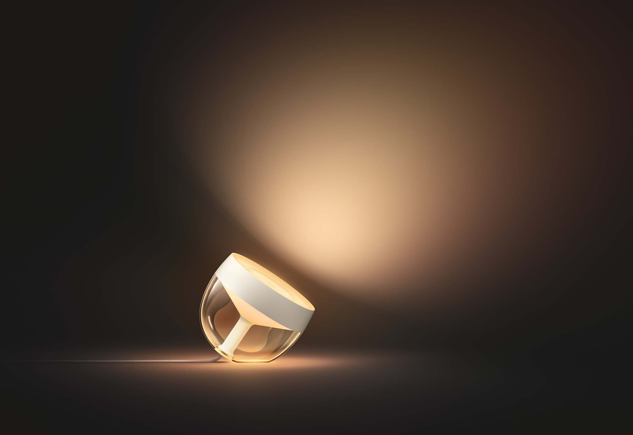 Philips Hue Iris laualambiga saate luua oma koju ideaalse värvilahenduse soovitud valgustoonidega. Hue Iris laualambi valgust saab seadistada nii, et see peegeldub kaudselt läbi seina pinna ja lambi poolläbipaistev korpus annab pehme taustvalgustuse, luues keeruka ja ainulaadse efekti.