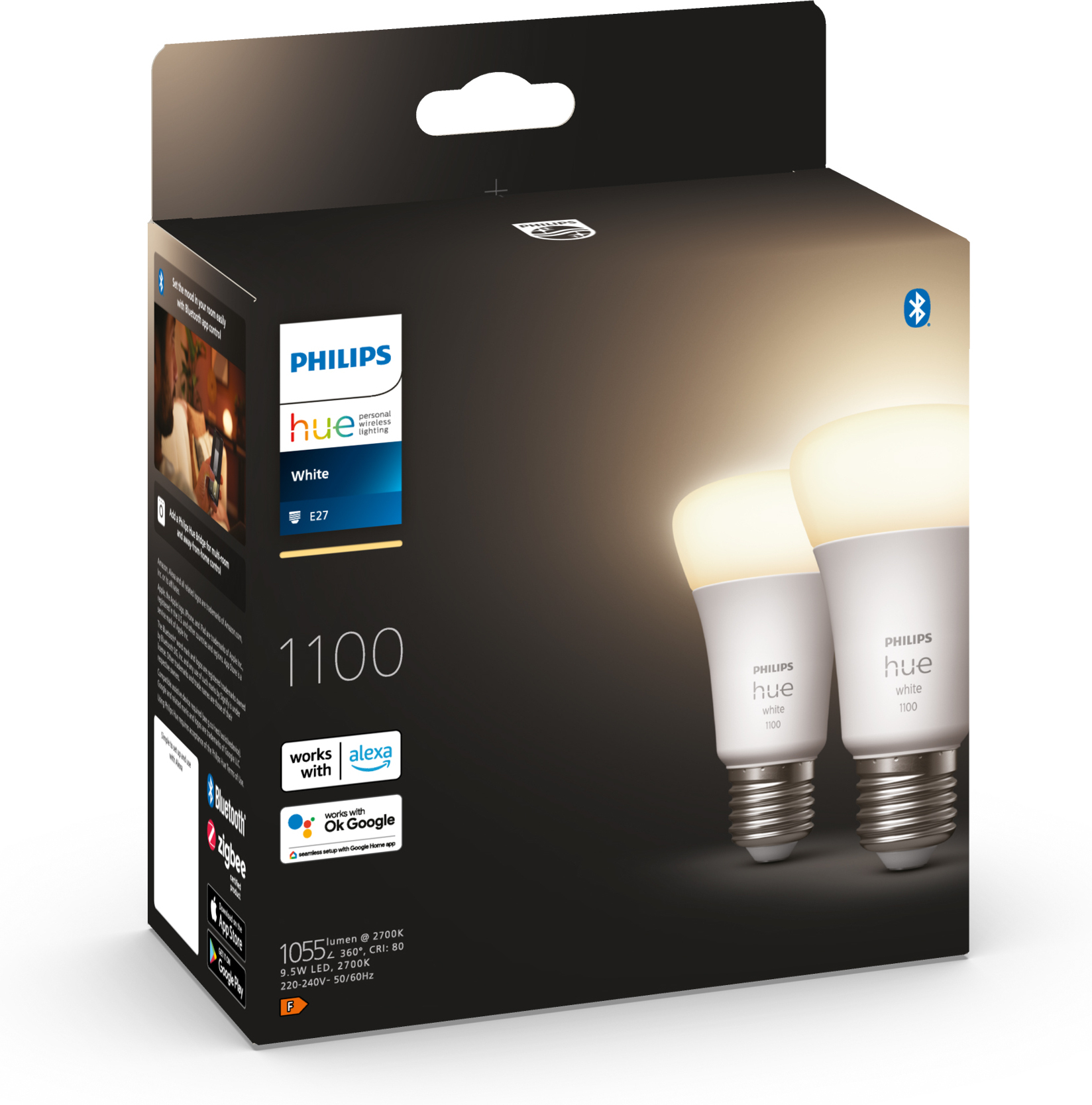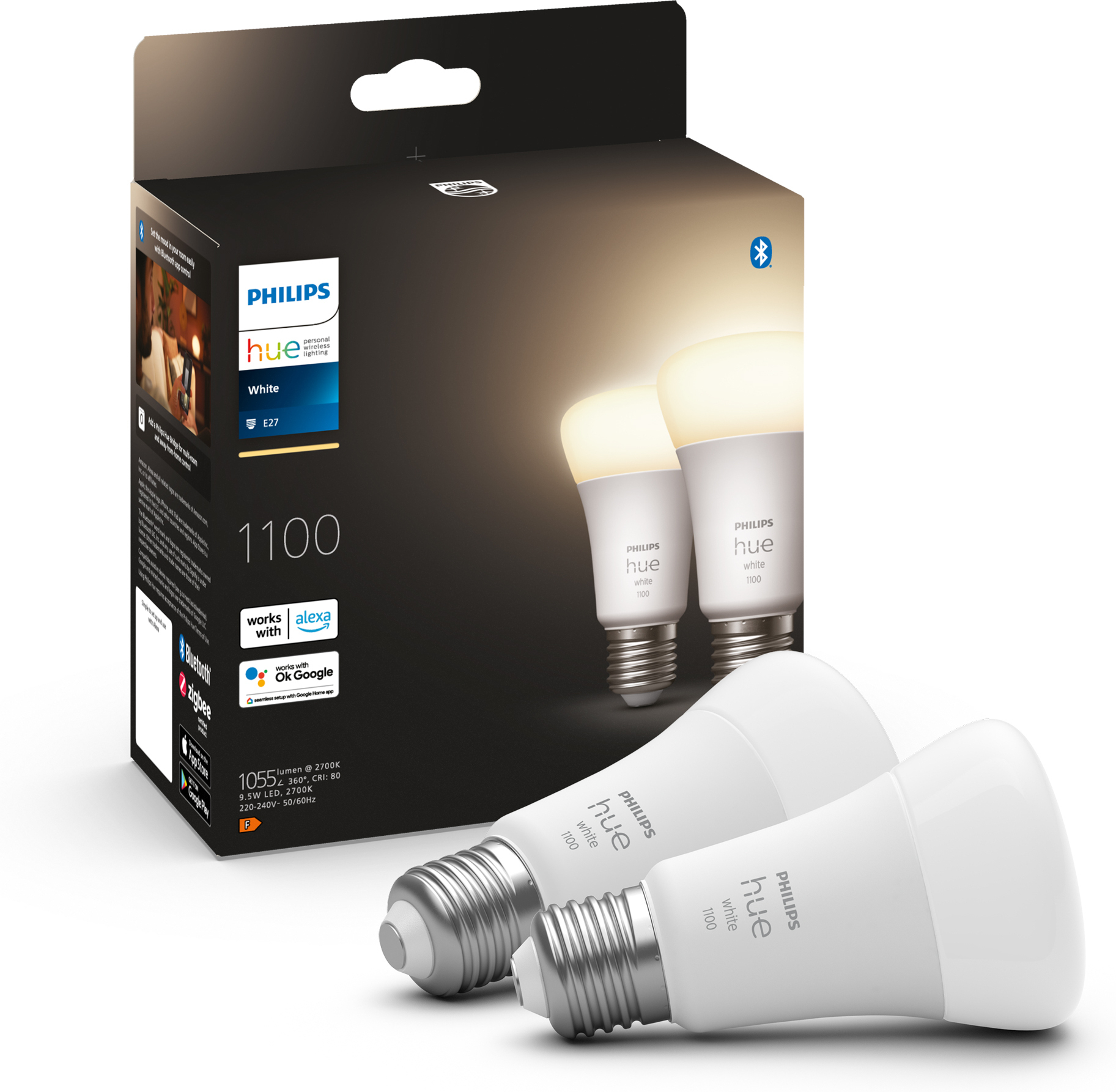 See kahe pirniga pakk sisaldab kahte Philips Hue White LED-pirni E27 sokliga. White seeria pirnide standardne värvitemperatuur on 2700 K ja pirnid on hämardatavad. Saate oma nutikaid tulesid kohe oma nutitelefoni või tahvelarvutiga Hue rakenduse kaudu juhtida. Hue Bridge’i lisamisega saate juurde pääseda veelgi rohkematele funktsioonidele.