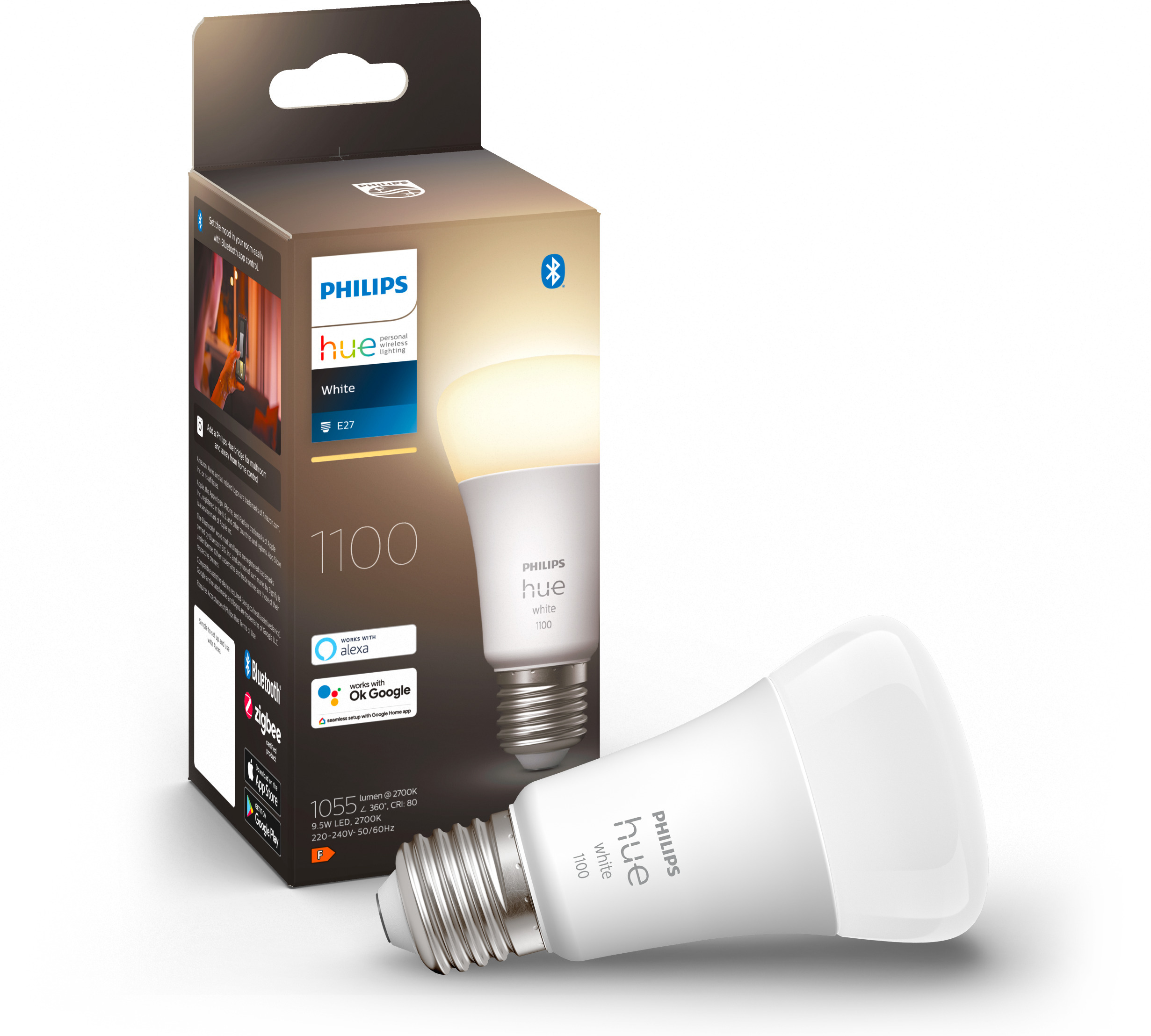 Hue Bridge’i lisamisega saate juurdepääsu veelgi erinevatele funktsioonidele. Unustage keerulised seaded, HUE muudab valgustuse lihtsaks ja lõbusaks! Laadige rakendus alla oma Androidi või Apple’i mobiilseadmesse ja saate oma valgustuse heledust oma mobiilseadmest juhtida. Paigaldamine on sama lihtne kui rakenduse installimine nutitelefoni ja lambipirni vahetamine. Philips Hue White’il on pehme 2700 kelvini valgustoon, mille heledust saab reguleerida kas Hue Dimmer Switchi kaugjuhtimispuldi või Hue rakenduse abil oma nutiseadmest. Hue pirnid töötavad samuti nagu tavalised pirnid lülititega. See pirn on hea valik kohtadesse, kus valguse värve pole vaja muuta. Tulede kaugjuhtimiseks väljastpoolt kodu vajate Hue Bridge’i valgusvõrgu ruuterit.
