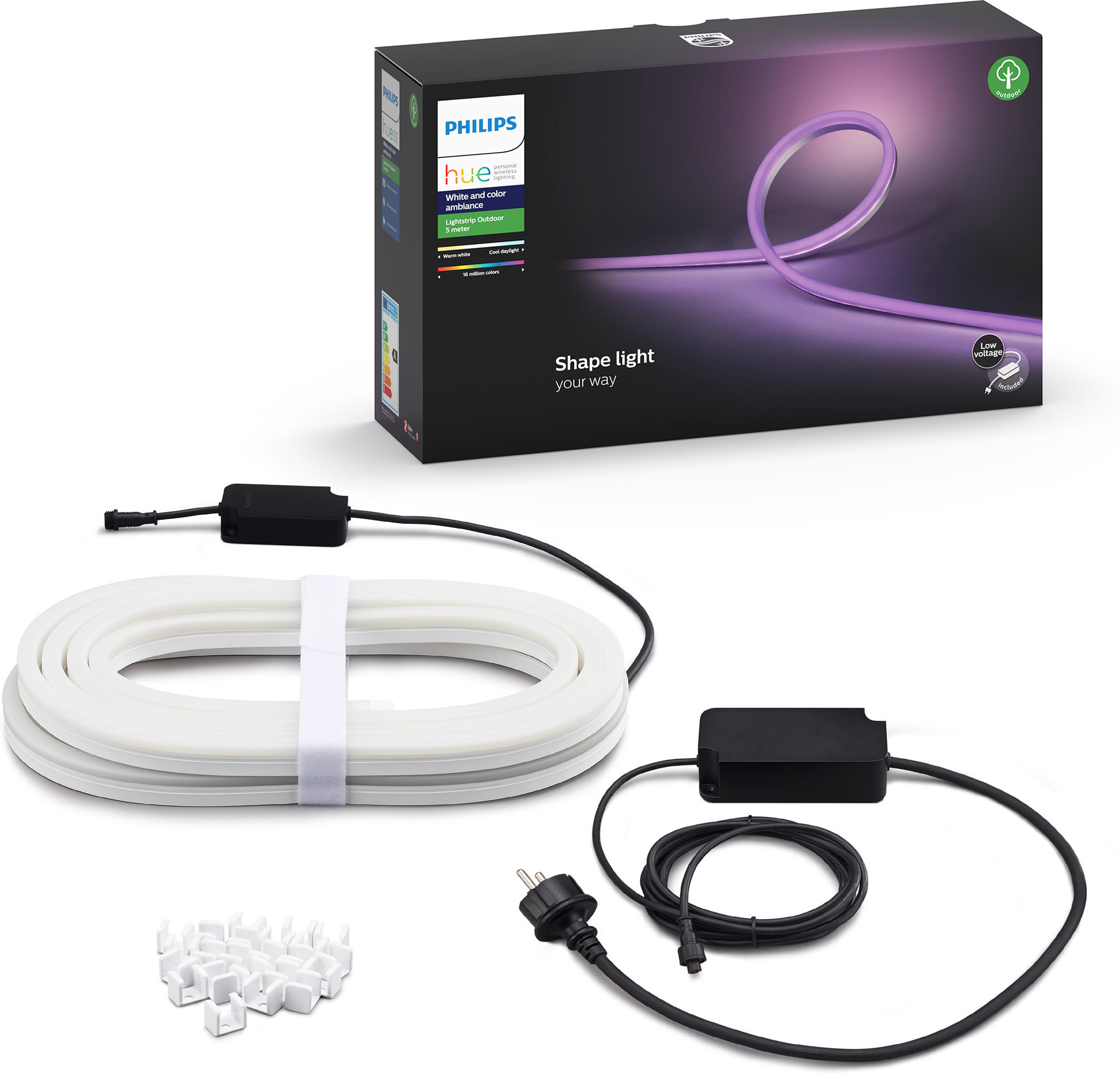 Hue õuevalgusriba on tõeliselt paindlik valgusallikas, mis sobib ka õues kasutamiseks. Saate valgusriba vormida mitmesugusteks kujudeks ja kasutada seda näiteks istutusala või aiatee servas. Seinale või lakke paigaldamiseks on kaasas kronsteinid.