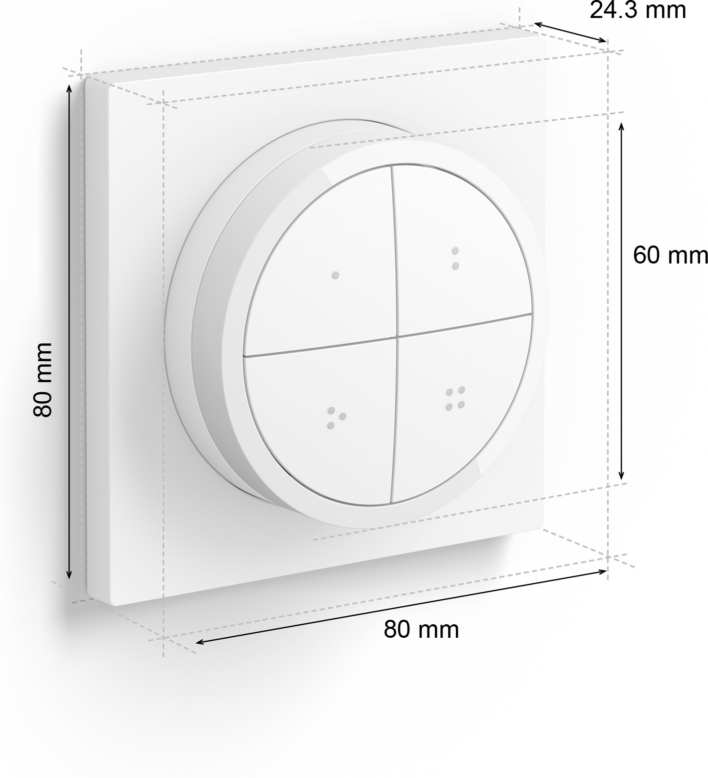 Juhtige kogu oma nutikat valgustussüsteemi kõikjal oma kodus – ilma telefoni või tahvelarvutita. Stiilse mati viimistlusega Philips Hue Tap ketaslülitiga saate valgustuse sätteid oma kodu igas toas reguleerida. Programmeeri iga nupp kolme eraldi ruumi või tsooni juhtimiseks – ja vali igaühe jaoks valgustusseadistus. Kinnitage Philips Hue Tap-lüliti kleepuva pinnaga seinale, kinnitage see mis tahes magnetilisele pinnale või eemaldage seinaplaadilt ja kasutage seda kaugjuhtimispuldina kõikjal oma kodus. Valgustuse taset saab täpselt reguleerida, keerates lülitit aeglaselt. Kui soovite ruumi valgustust kiiresti heledamaks või hämardada, keerake regulaatorit kiiremini. Iga kraanilüliti nupuga saab juhtida kuni kolme tuba või tsooni. Igal toal ja alal on oma valgustusseaded, mida saate ka ise seadistada. Valige Hue rakenduse vahekaardil Seaded iga nupu jaoks eraldi ruum või ala (ja valgustuse seadistus).