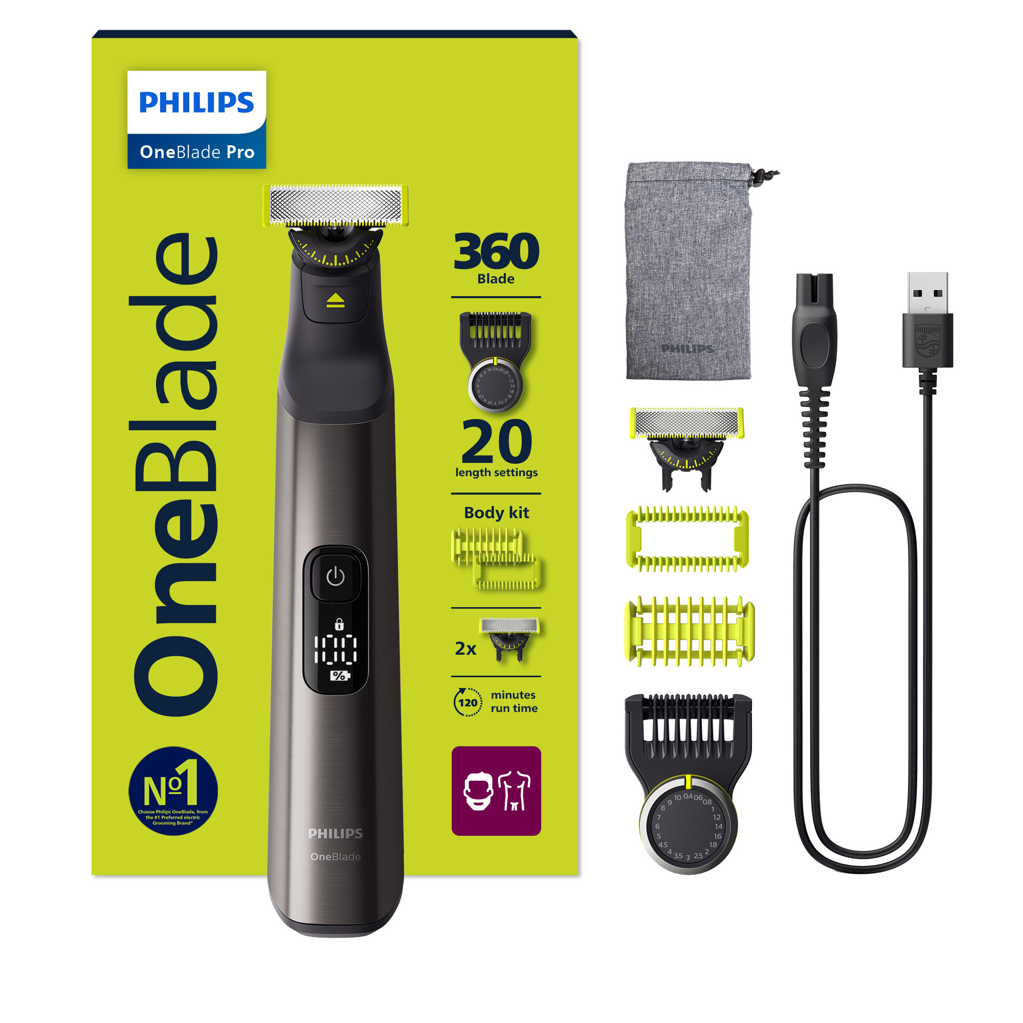 OneBlade Pro 360 trimmib, piirab ja ajab raseerima igas pikkuses habemekarvu. Raseerib ja piirab hõlpsalt isegi kõige keerulisemaid kohti, nagu intiimpiirkond, kaenlaalused ja kael. Individuaalne habeme kujundamine täppiskammi 20 lukustatava pikkuse seadistusega.