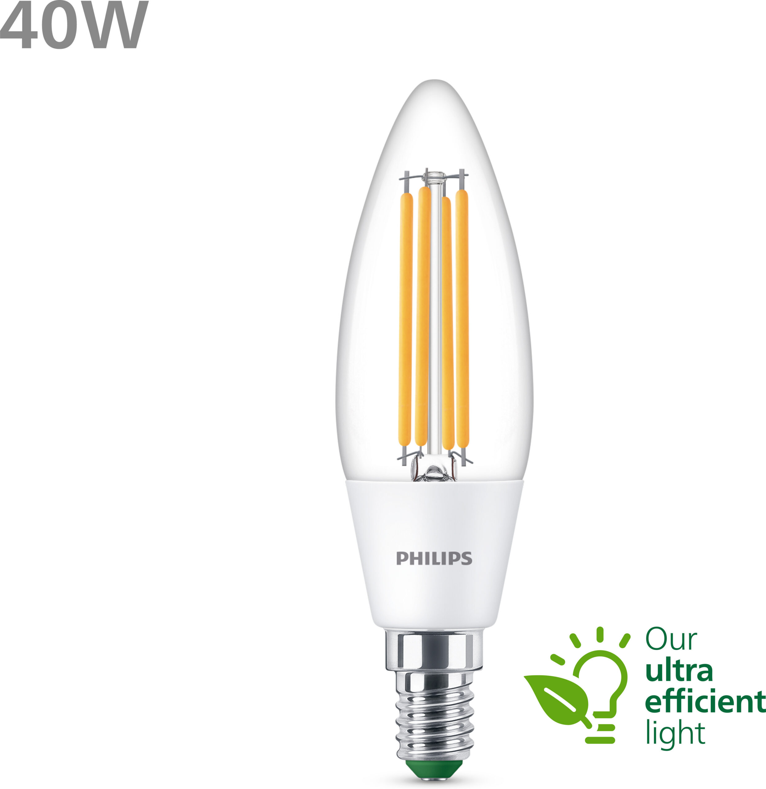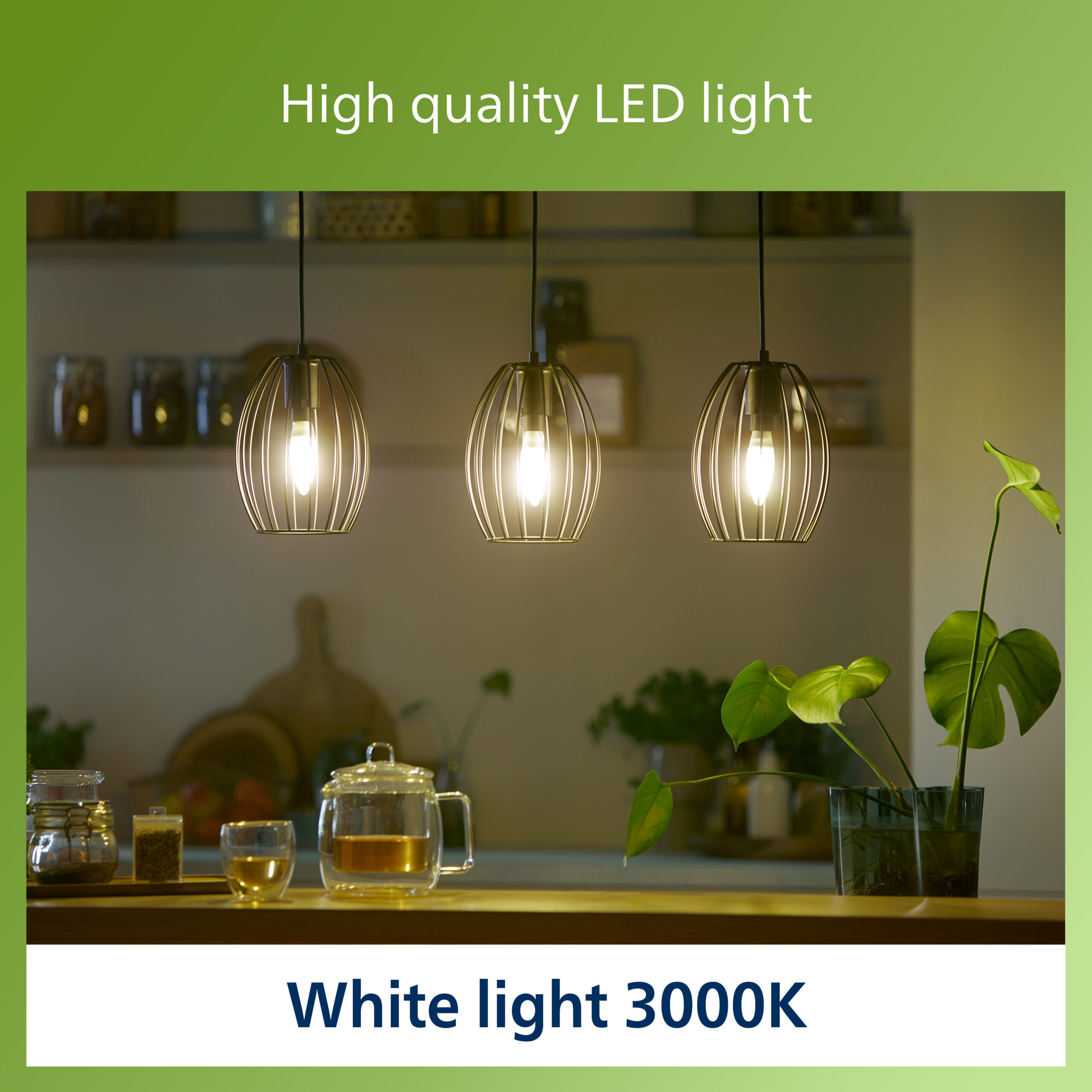 Uusimate LED-pirnidega saate oma interjööri hõlpsalt luua funktsionaalse üldvalgustuse. See Philipsi ülitõhus pirn on loodud nii, et see näeks hea välja nii väljalülitatud kui ka sisselülitatud valguse korral, isegi väikese sokliga küünlapirnina. Lahendus säästab energiat kohe algusest peale ja pirne tuleb harvemini vahetada. Ja mis kõige parem, valgustuse kvaliteet jääb samaks. Philipsi ülitõhus pirn kuulub uue energiamärgise järgi A-klassi, pirn tarbib vaid 2,3 W elektrit, pakkudes sama palju valgust kui eelmine 40 W hõõglamp.