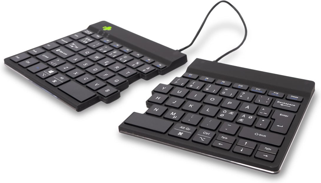Klaviatuur koosneb kahest eraldi osast, mida saate vastavalt oma soovile paigutada. See jaotus hoiab ära randmete painutamise kirjutamise ajal. Sirgete randmetega kirjutamine vähendab lihaspingeid ja hoiab ära kõõluste ja veresoonte pigistamise. Ühe liigutusega võimaldab sisseehitatud magnet teil klaviatuuri kaks eraldi osa kompaktseks üheks klaviatuuriks muuta. Väike suurus tagab, et hiir on alati käeulatuses. Tänu kergele klahvivajutusele on lihaspinge kirjutamise ajal minimaalne. Klaviatuur on tasane, nii et teie käed ja randmed jäävad kirjutamise ajal lõdvestunud.