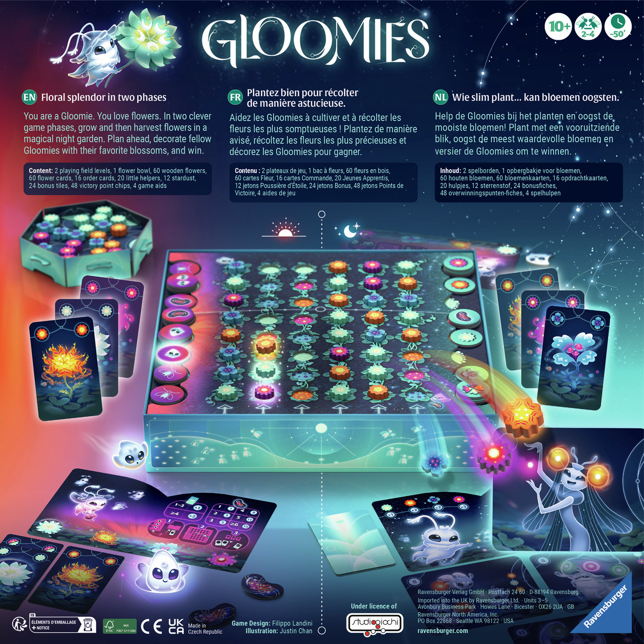 Gloomies loob igas mänguvoorus täiusliku naudingu atmosfääri. Armastusega kujundatud puidust lilled, atmosfäärilised illustratsioonid ja kvaliteetsed komponendid muudavad mängu visuaalselt vapustavaks. 60 puidust lille neljast erinevast liigist, 60 lillekaarti ja 24 kahepoolset boonusplaati loovad rikkaliku mängumaailma.