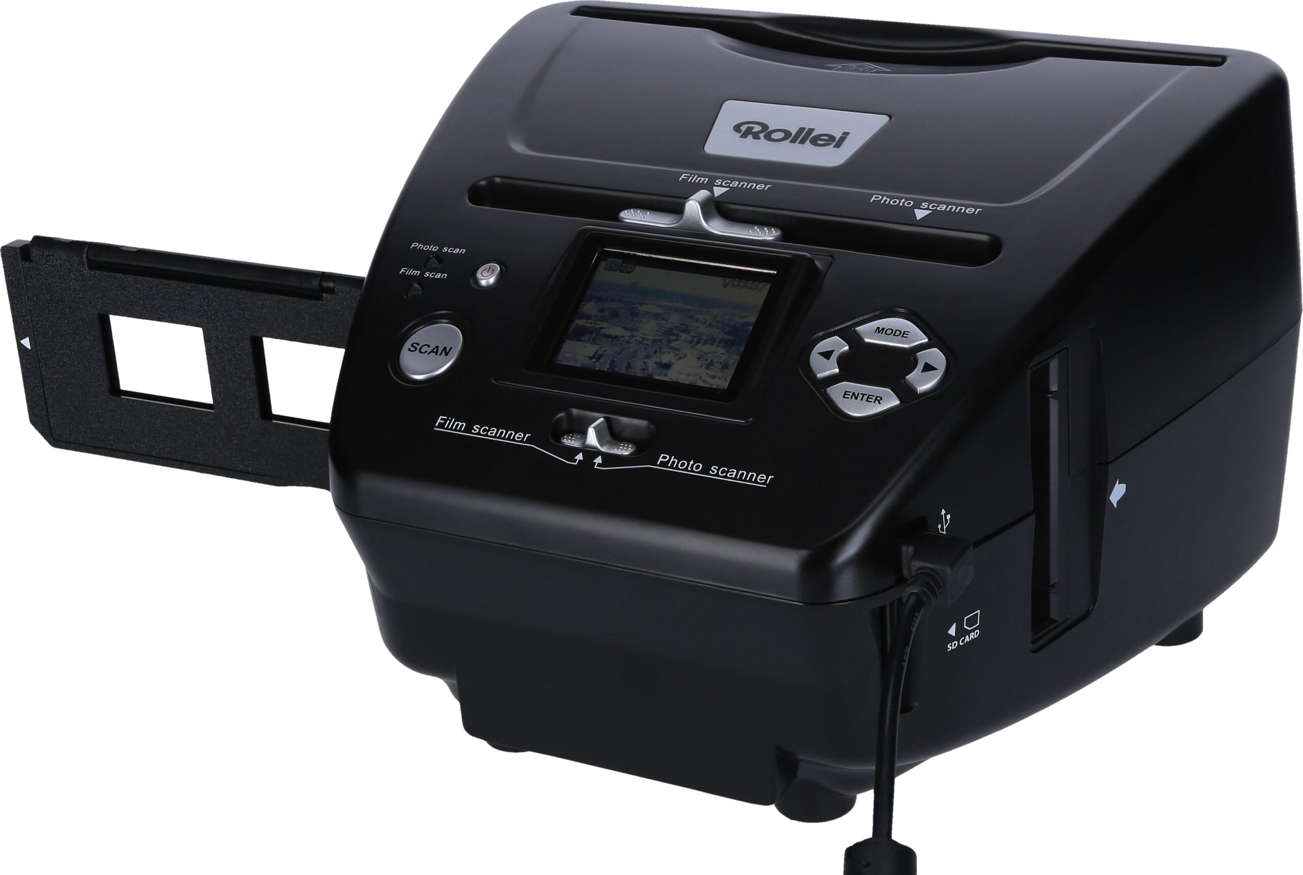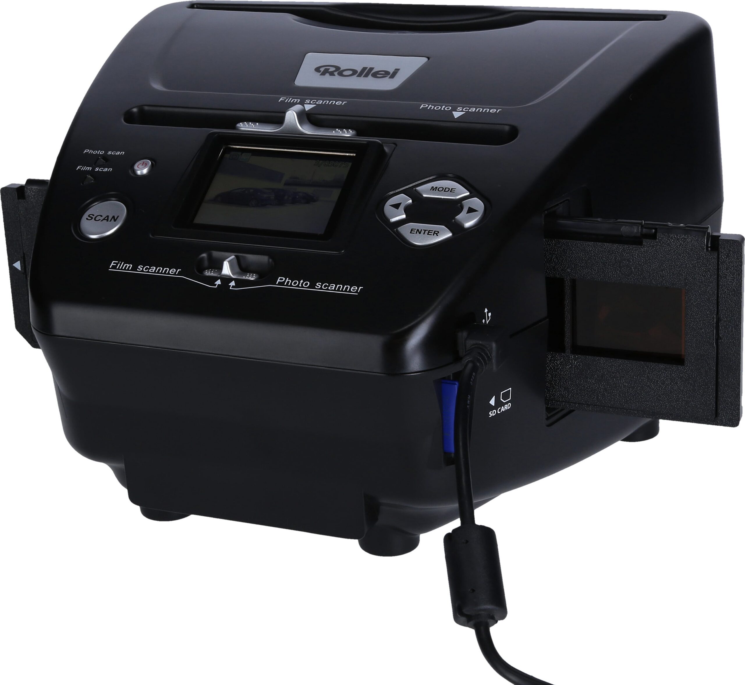 Rollei PDF-S 240 SE:ssa on 2,4 tuuman TFT-väri näyttö, jonka avulla voit esikatsella ja säätää kuvia ennen tallentamista. Tämä tekee skannausprosessista entistä sujuvampaa ja käyttäjäystävällisempää. Skanneri on suunniteltu itsenäiseen käyttöön, joten voit käyttää sitä ilman tietokonetta. Se tukee SD, SDHC ja MMC-muistikortteja, joten voit tallentaa kuvat suoraan kortille.