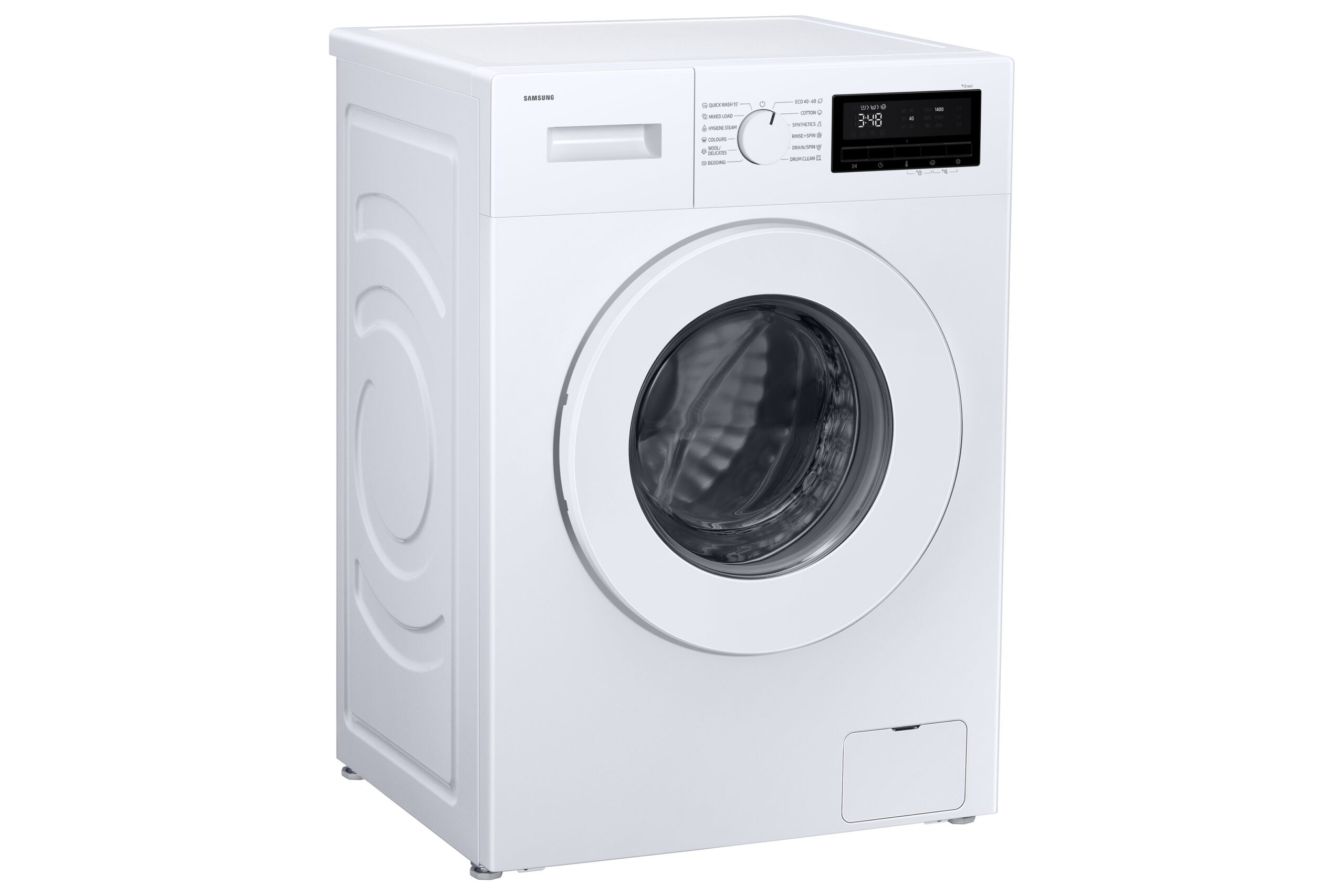 Samsung pyykinpesukone on syvyydeltään tavanomaista kapeampi, jonka vuoksi se mahtuu ahtaampaankin kylpyhuoneeseen.