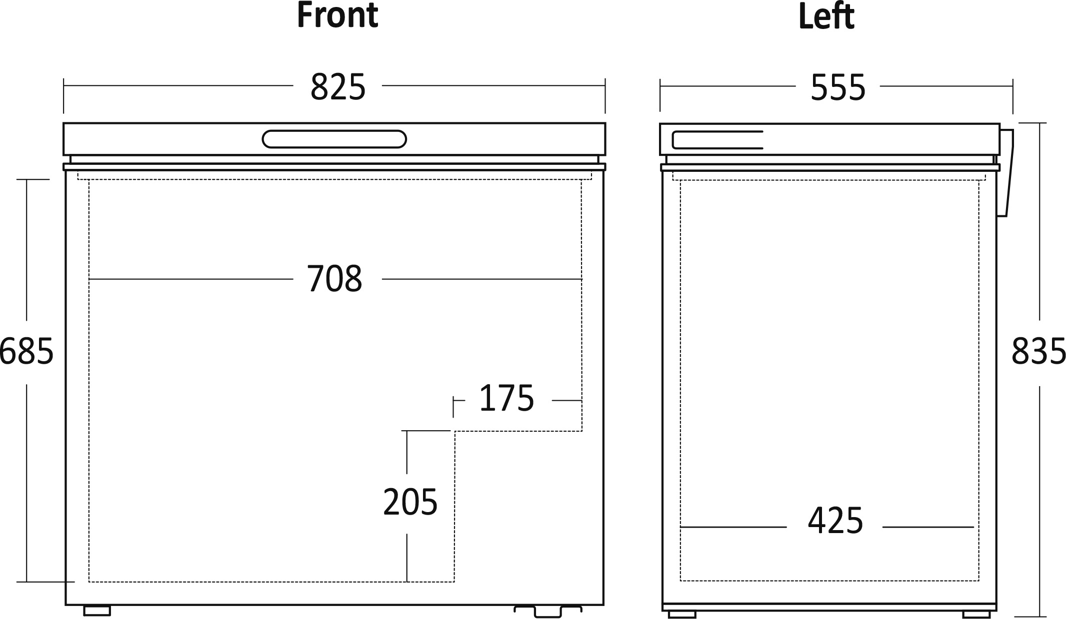 Scandomesticu avar konteiner-sügavkülmik energiaklassiga D. Seda sügavkülmikut saab kasutada kuni -15 °C juures. Mõõtmed K x L x S (mm): 835 x 823 x 555