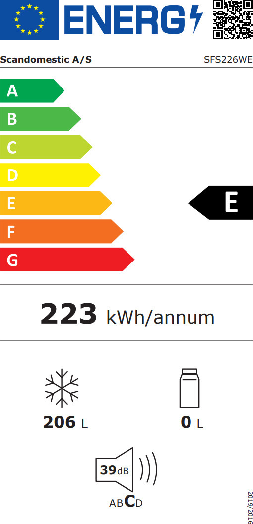Scandomestic SFS226WE on sügavkülmik, mille laius on vaid 54 cm, energiaklass E ja millel on NoFrost automaatne sulatus. Sügavkülmiku maht on 206 liitrit. Kapil on 4 sahtlit ja kaks riiulit, mis võimaldavad teil toiduaineid sügavkülmas vastavalt oma vajadustele paigutada. Õige temperatuuri seadistamine on lihtne ukse kohal asuva digitaalse juhtpaneeli abil. Ukse avamise suund on pööratav.