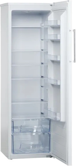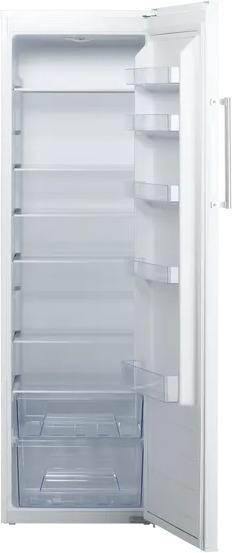 Scandomestic SKS346WE on 290-liitrine valge külmik reguleeritavate karastatud klaasist riiulite ja kahe köögiviljasahtliga. See on varustatud LED-valgustuse, hingedega ukse ja vastupidavate roostevabast terasest käepidemetega.