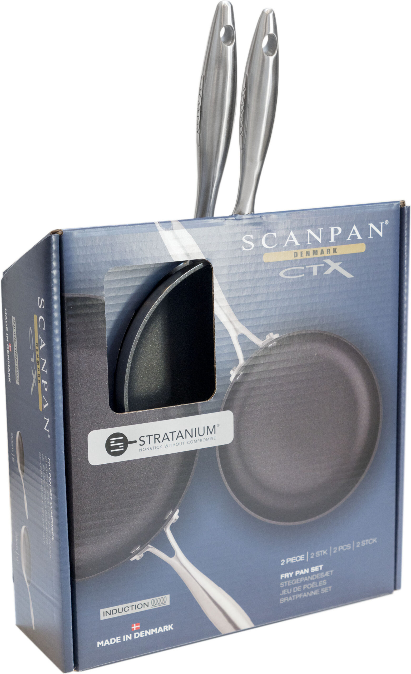 Komplekt sisaldab kahte Scanpan CTX praepanni läbimõõduga 20 ja 28 cm.