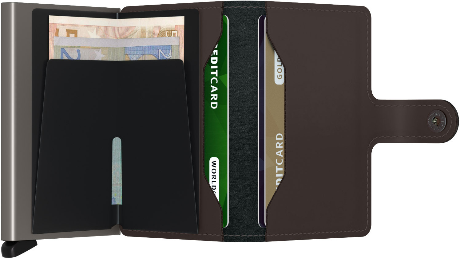 Secrid Miniwallet on disainitud Secrid Cardprotector kaardiümbrist silmas pidades. Lisaks kaardiümbrisele on rahakotis ruumi rahatähtede, visiitkaartide ja väikese koguse müntide jaoks.