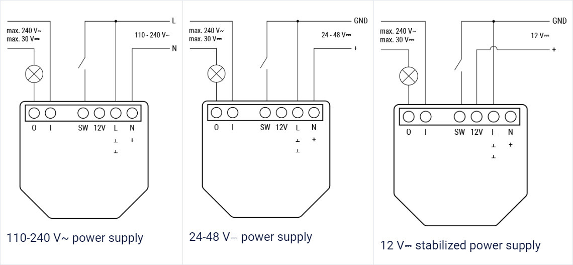 - Nimellinen jännite: AC: 110 – 240 V, DC: 24 – 48 V / 12 V