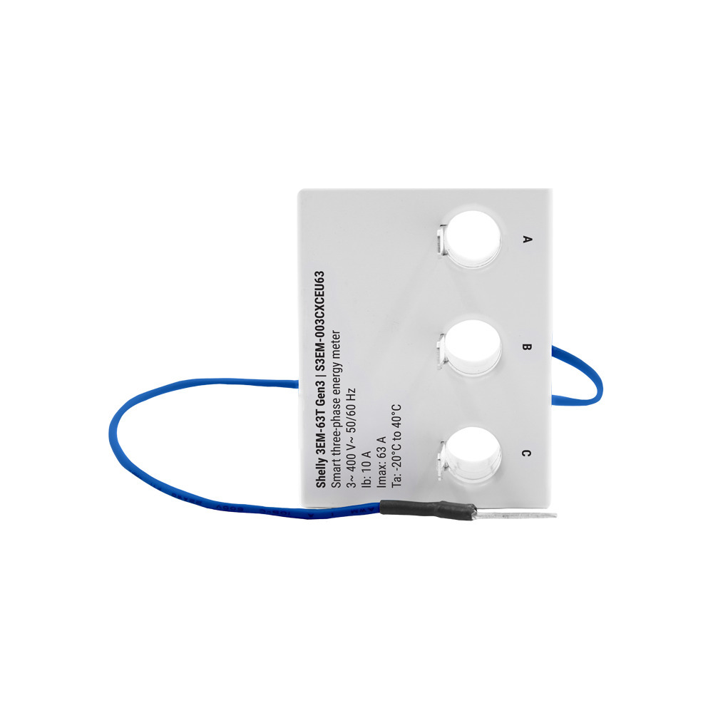 Shelly 3EM-63T Gen3 on kolmefaasiline energiamõõtur, mis mõõdab elektritarbimist ja muud energiainfot kolmest eraldi faasist. See sobib kuni 63 A voolutugevusega koormustele ja pakub B-klassile vastavat mõõtmistäpsust. Seade kogub reaalajas teavet võimsuse, voolutugevuse, pinge ja võimsusteguri kohta ning salvestab mõõtmisandmeid iga tund kuni viieks aastaks Shelly Cloudi teenusesse. Shelly 3EM-63T Gen3 on loodud lihtsaks paigaldamiseks ja haldamiseks ning töötab kohalikus WiFi-võrgus ilma pilveteenuste vajaduseta.