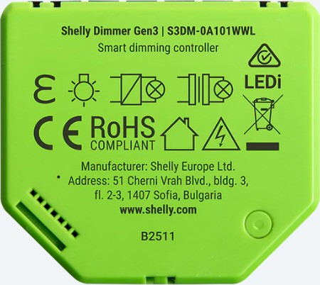 Shelly Dimmer Gen3 WiFi dimmer paigaldatakse lüliti või lambipesa taha ilma neutraaljuhtmeta. Seade sobib paljudele lampidele ja toetab mitmeid nutika kodu süsteeme. Dimmeril on automaatne kalibreerimine, võimsusmõõtur ja taimerifunktsioon.