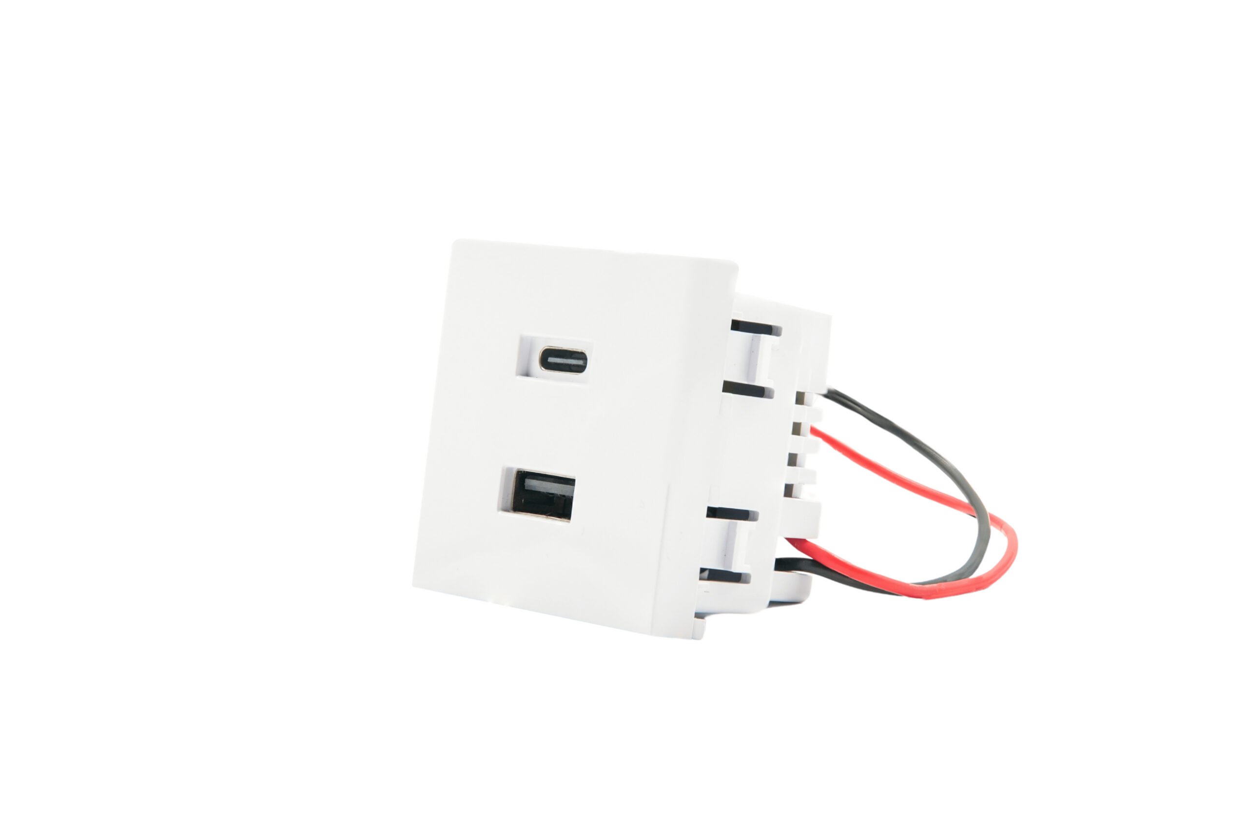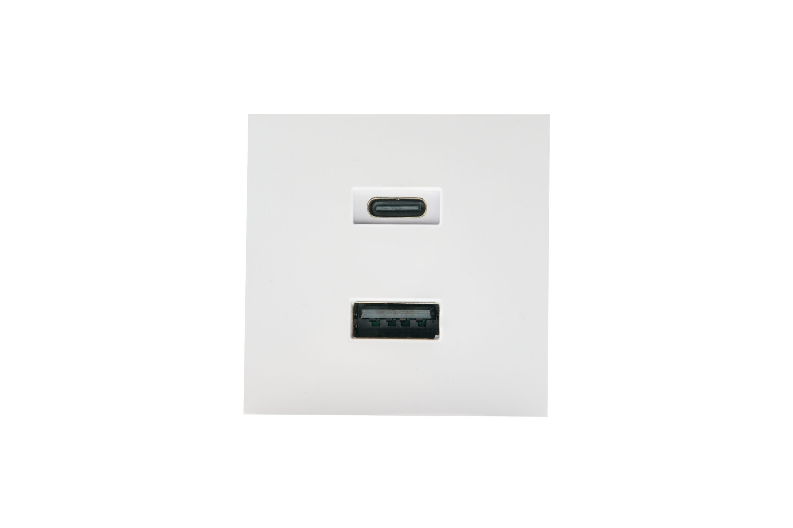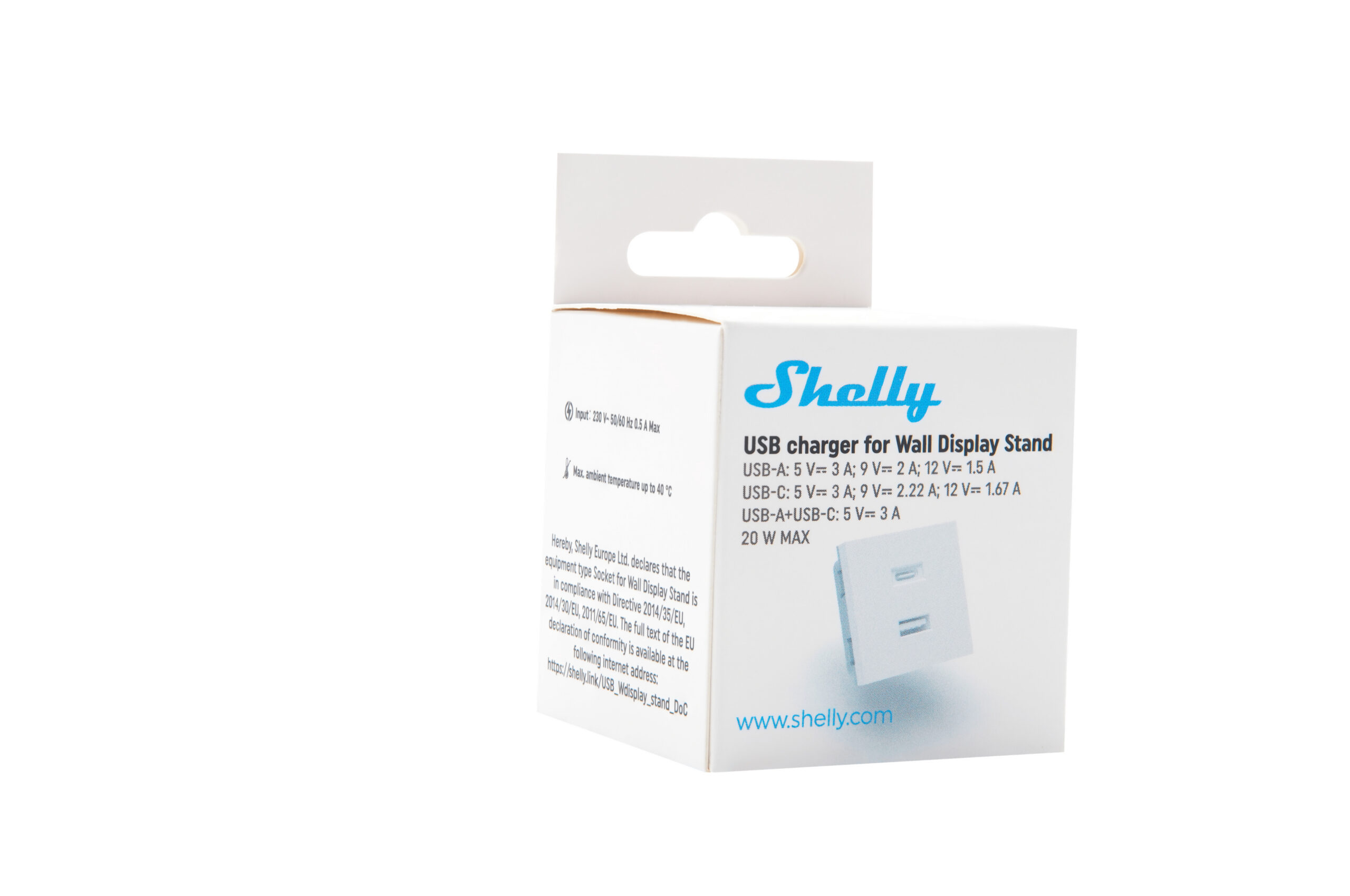 Laturissa on sekä USB-A- että USB-C-portti, joten voit ladata yhtä aikaa useampaa laitetta tai valita sopivan portin eri laitteillesi. Tämä tekee siitä kätevän lisän Shelly Wall Display -näytölle sekä muille USB-laitteille.
