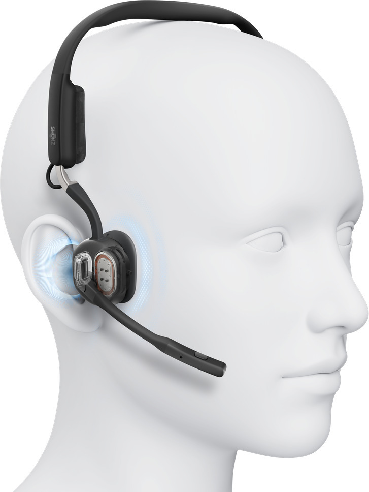 Shokz OpenMeet UC luujuhtivusega kõrvaklapid pakuvad kerget ja mugavat istuvust tänu oma avatud disainile. Neil on kaks mikrofoni Qualcommi mürasummutusega, USB-C ühenduvus ja kuni 15 tundi aku tööiga.