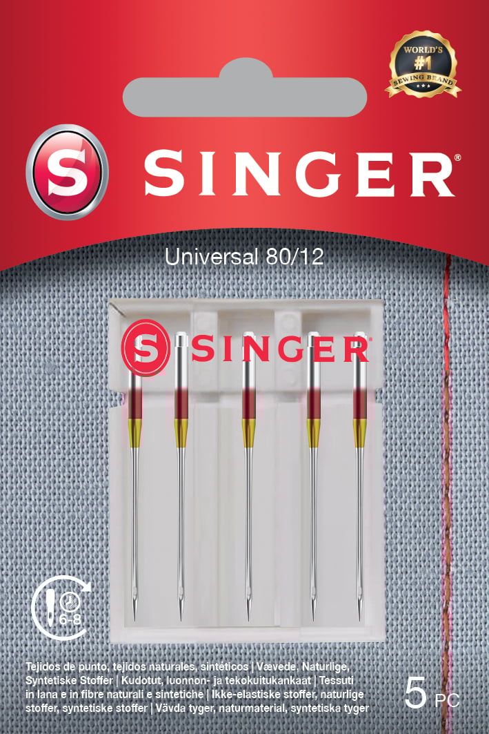 Singeri universaalnõel suurus 80 sobib kootud kangaste õmblemiseks. Nõel libiseb sujuvalt läbi kudumite ja kootud kangaste tänu ümarale otsale ja kaldus peale.