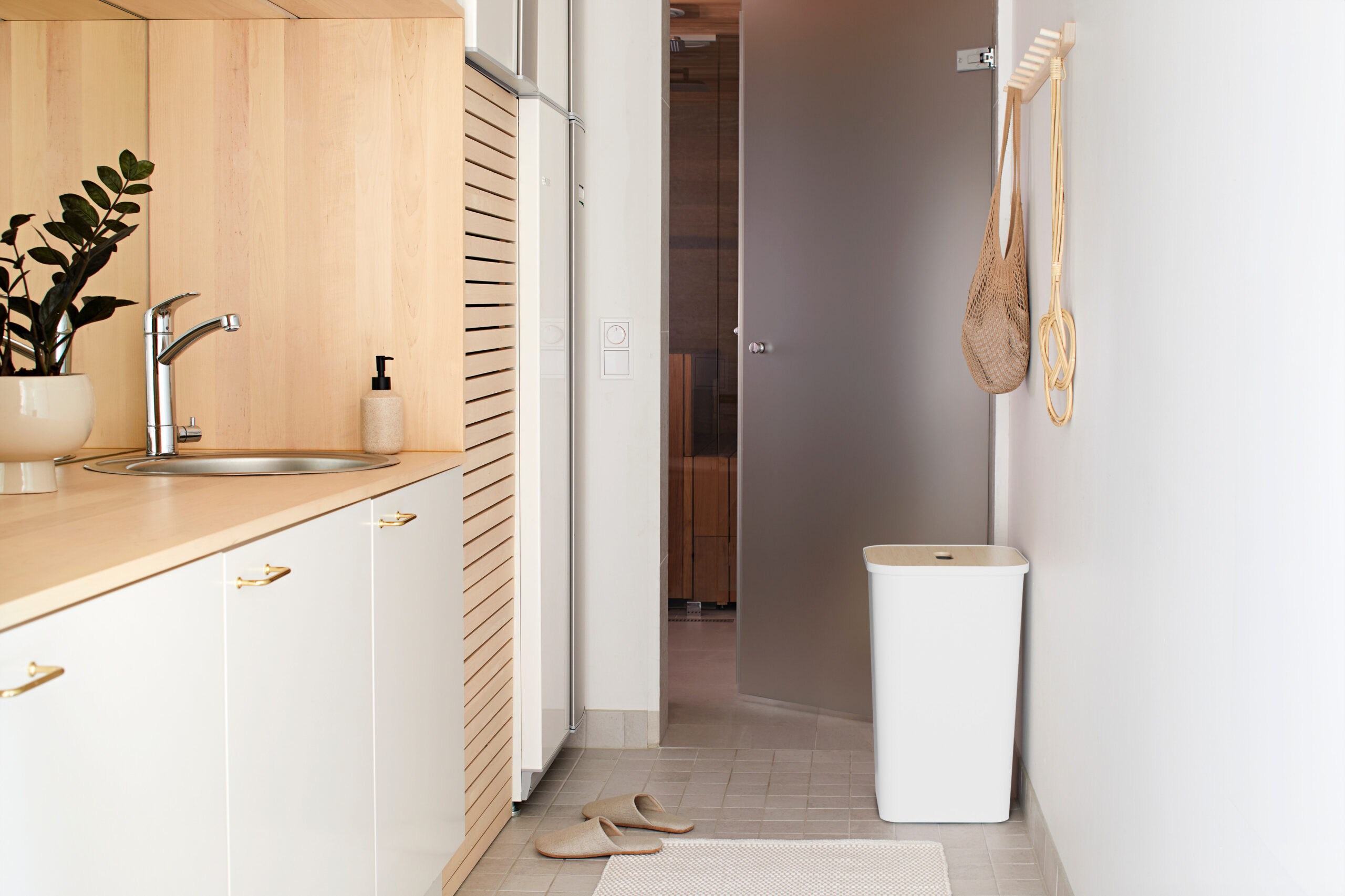 SmartStore™ Collect on jätkusuutlik hoiulahendus igapäevasteks vajadusteks. Soome disainikontseptsioon on loodud selleks, et muuta sorteerimine ja ringlussevõtt tänapäevastes kodudes lihtsamaks. See 53-liitrine sorteerimislahendus sobib ideaalselt pesu, pudelite, purkide ja papi sorteerimiseks, aga ka muuks hoiustamiseks. Toode sobib paigutamiseks kööki, esikusse või esikusse ning mahub ka kitsastesse ja kitsastesse kohtadesse. Kõik plastosad on valmistatud Põhjamaades tugevast ja kauakestvast taaskasutatud plastist. Kaunis puidust kaas täiendab toodet.