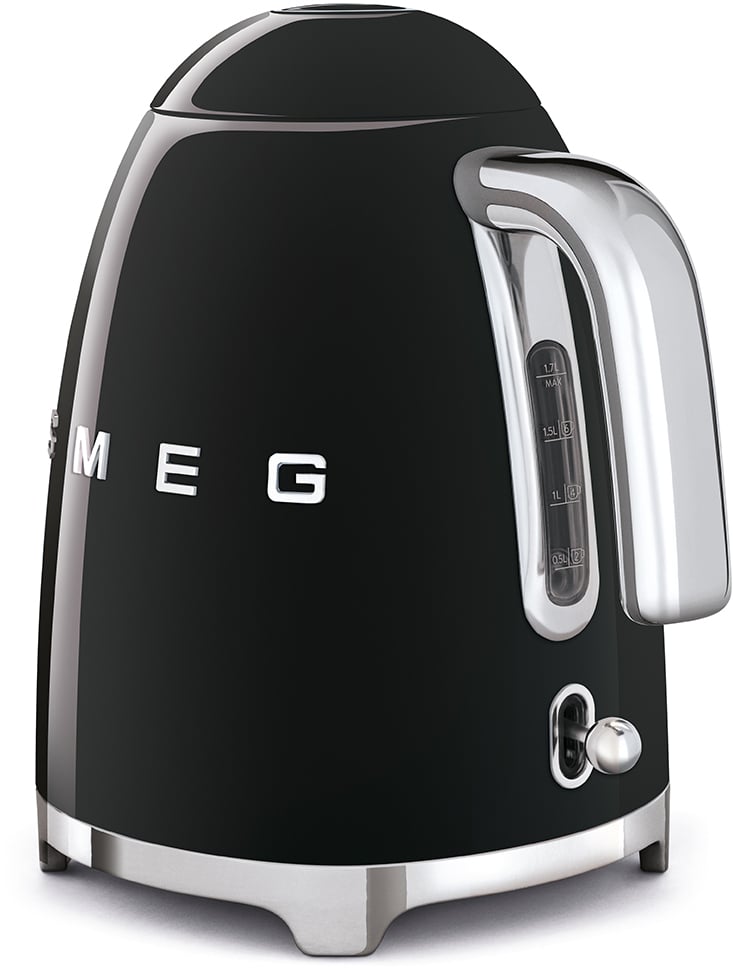 Smegi veekeetja on valmistatud roostevabast terasest ja sellega saab korraga keeta 1,7 liitrit vett. Stiilse välimuse täiendab kroomitud käepide. Veekeetjal on automaatne toitelüliti, mis lülitub sisse, kui vesi keeb või kui veekeetja on tühi. Veekeetja pöörleb alusel 360 kraadi ja juhtmevaba kannu on lihtne lauale tõsta. Selge veetaseme näidik suurendab kasutusmugavust. Veekeetjal on peidetud kütteelement ja eemaldatav katlakivifilter. Alusel on hoiuruum toitejuhtme jaoks ja kummist jalad, mis tagavad seadme stabiilse seismise.