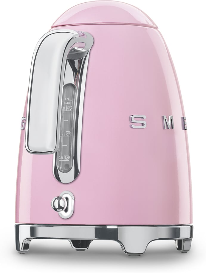 Smegin vedenkeitin on valmistettu ruostumattomasta teräksestä ja siinä keität kerrallaan 1,7 litraa vettä. Tyylikkään ulkonäön viimeistelee kromattu kahva. Keitin on varustettu automaattisella virrankatkaisulla veden kiehuessa tai kun keitin on tyhjä. Keitin kääntyy jalustassaan 360 astetta ja johdoton kannu on helppo nostaa pöytään. Selkeä vedentason näyttö lisää käyttömukavuutta. Keittimessä on piilotettu lämpöelementti ja irrotettava kalkkisuodatin. Pohjassa on säilytystilaa virtajohdolle ja kumitassut, jotka takaavat, että laite seisoo vakaasti.