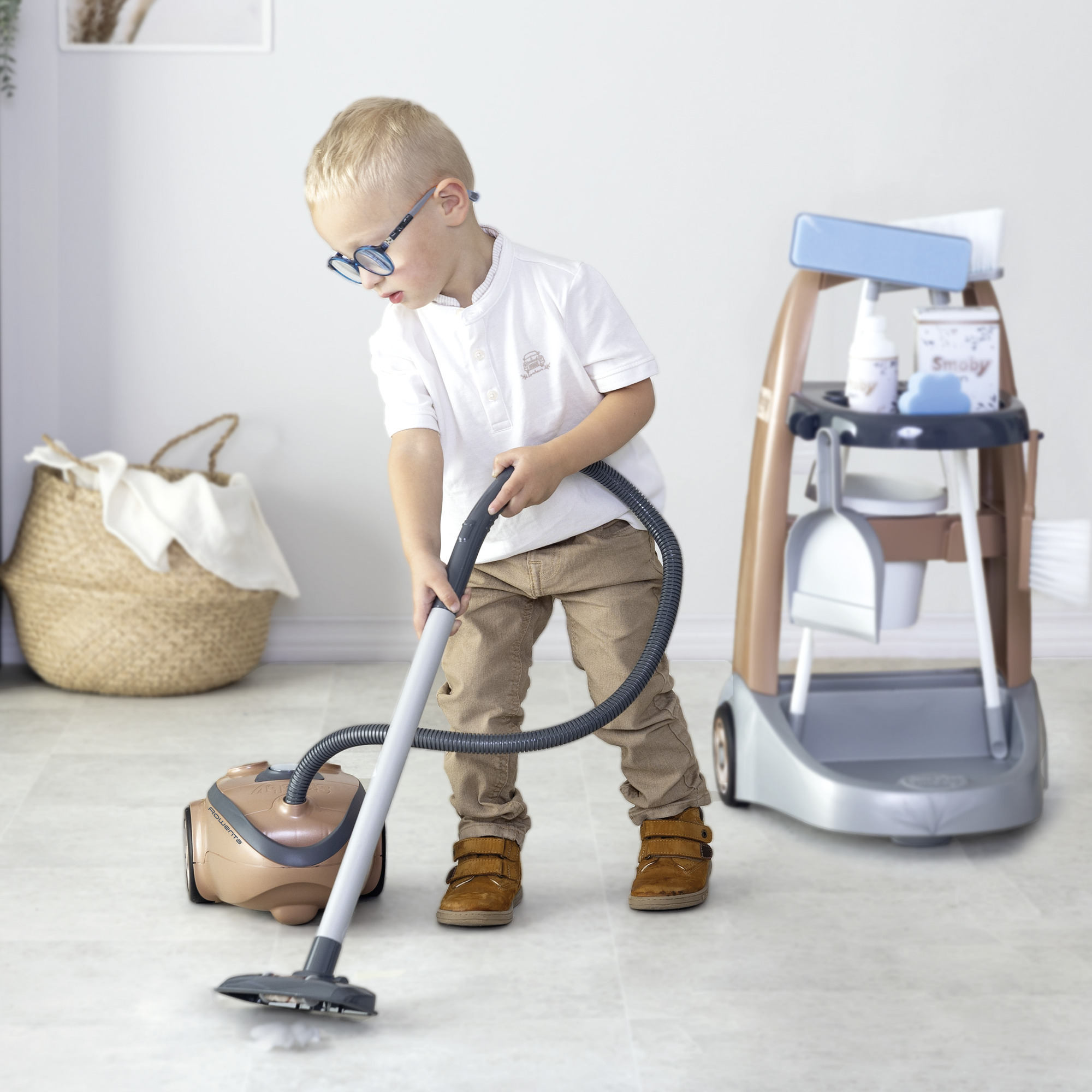 Tämän upean Smoby Rowenta siivouskärry ja imuri -leikkisetin ansiosta perheen pienimmätkin voivat osallistua kotitöihin. Leikki-imurista kuuluu todellista pölynimurin ääntä ja monipuoliset mukana tulevat tarvikkeet mahdollistavat eri kotitöiden tekemisen. Voit mm. lakaista, mopata, harjata, imuroida tai pestä lavuaarit mukana tulevilla siivousvälineillä.