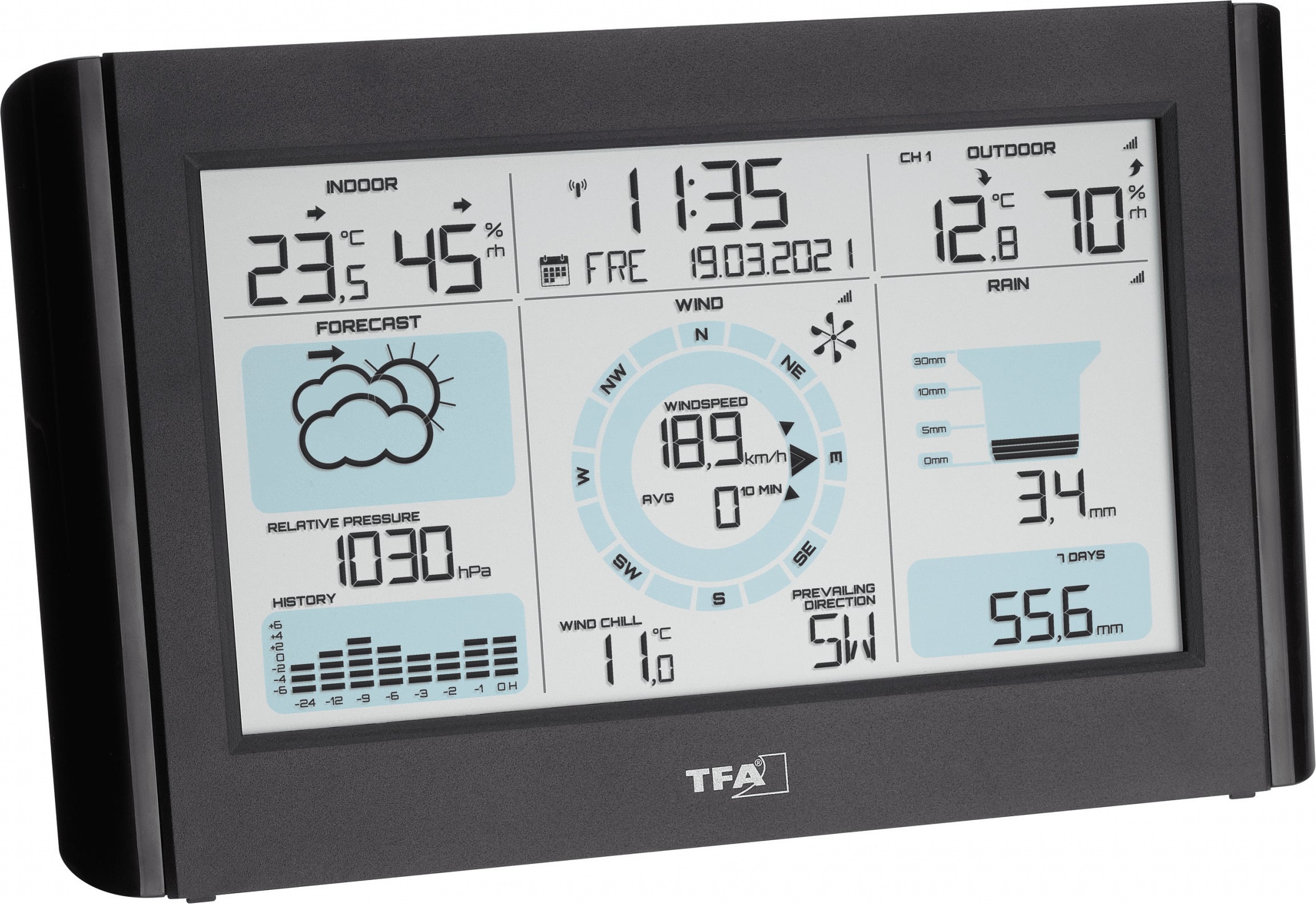 Finnish Thermometer 7870 juhtmevaba ilmajaam, 3 kanaliga. Lihtsalt kasutatav juhtmevaba ilmajaam, mis mõõdab temperatuuri, niiskust, õhurõhku, sademete hulka ning tuule kiirust ja suunda.