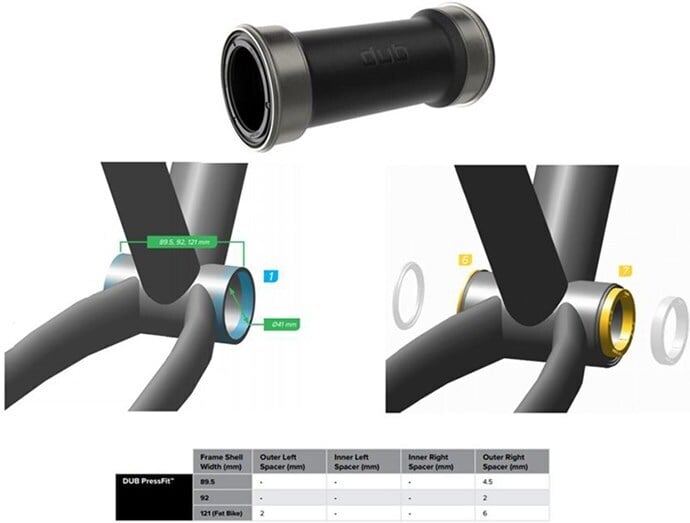 SRAM dub -kammille sopiva keskiölaakeri maastopyöriin. Pressfit keskiömuhville, jonka leveys on 89,5/92 mm. 28,99 mm paksuille dub keskiöakseleille.