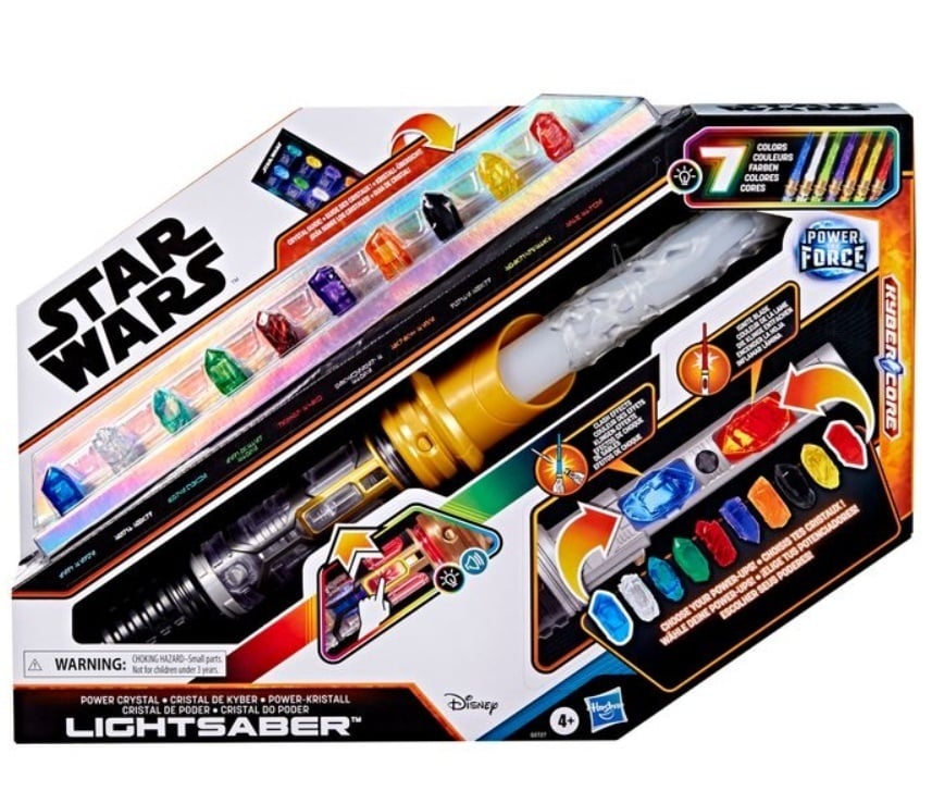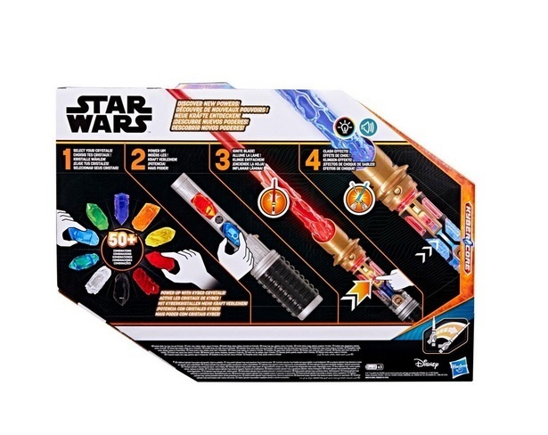 Power Crystal -valomiekan mukana tulee 10 värillistä kyberkristallia. Laita kaksi kristallia valosapelin kahvaan, niin sen terä vaihtaa väriä! Voit valita terän värin seitsemän eri värin joukosta ja voit yhdistellä kyberkristalleja yli 50 tavalla. Valomiekka näyttää samalta kuin Star Wars -elokuvissa ja siinä on pidennettävä, valaistu terä, joka aukeaa ranneliikkeellä sekä Star Wars -galaksista tuttuja ääniefektejä.