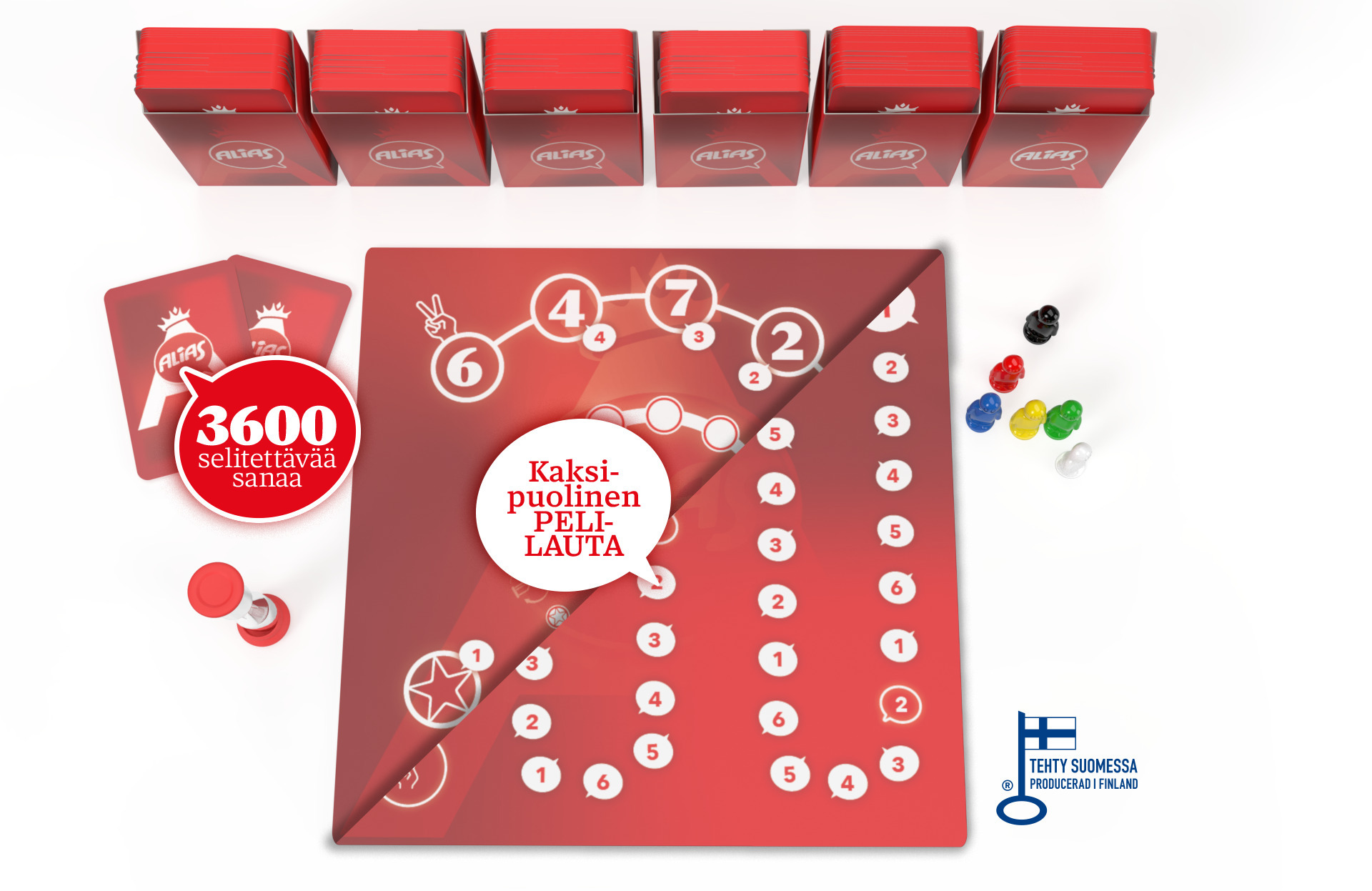 Pane oma loovus proovile, püüdes sõnu seletada ilma neid otse ütlemata. Kasuta enda kasuks vihjeid, vastandeid ja sama tähendusega sõnu! Uues kahe mängijaga mängus saad sõbraga mängu ja aja vastu võistelda. Tähista Aliase 35. aastapäeva, mängides nii tuttavatel kui ka täiesti uutel viisidel!