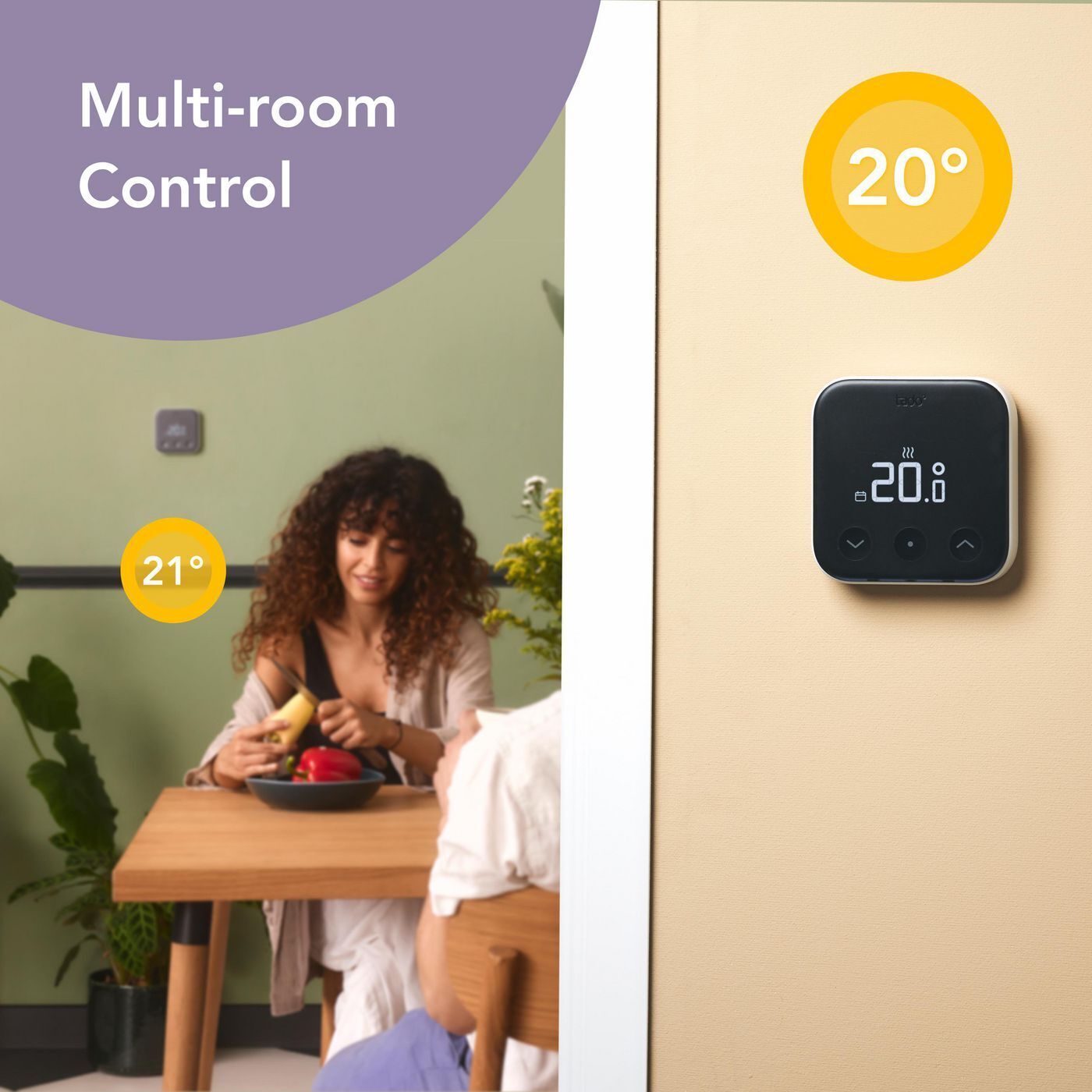 • Paki sisu: Nutikas termostaat X, sild X, 3 x AAA patareid, seinakinnituskruvid ja kleebised, EU/UK pistik