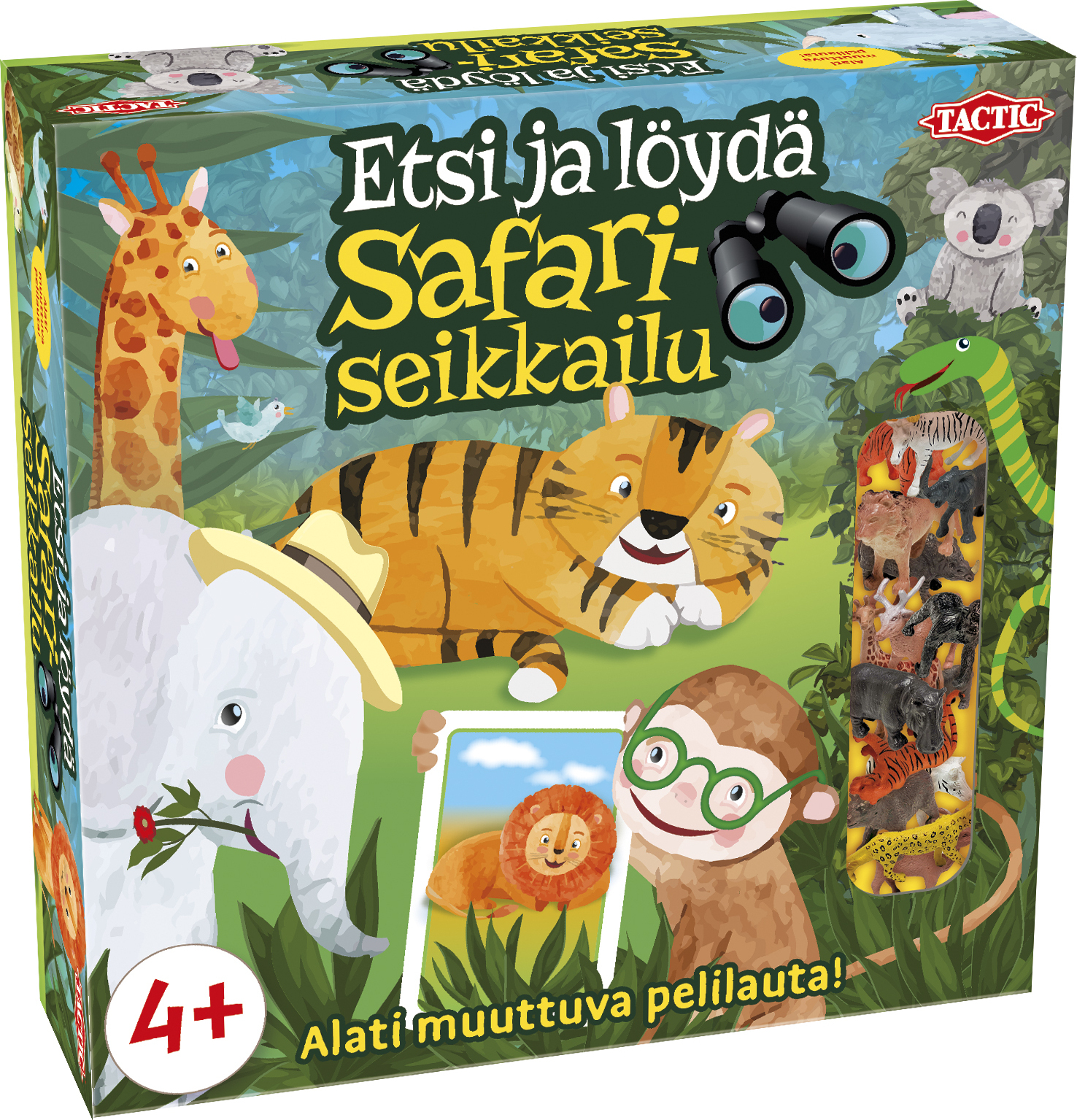 Tere tulemast safarile! Leia kaartidelt näidatud loomad ja osuta neile samal ajal mängulaual! Kui teed seda enne teisi mängijaid, premeeritakse sind loomategelasega! Aitab lastel arendada oma vaatlusoskusi. Kahepoolne mängulaud, mis on kokku pandud suurtest pusletükkidest, on iga kord erinev.